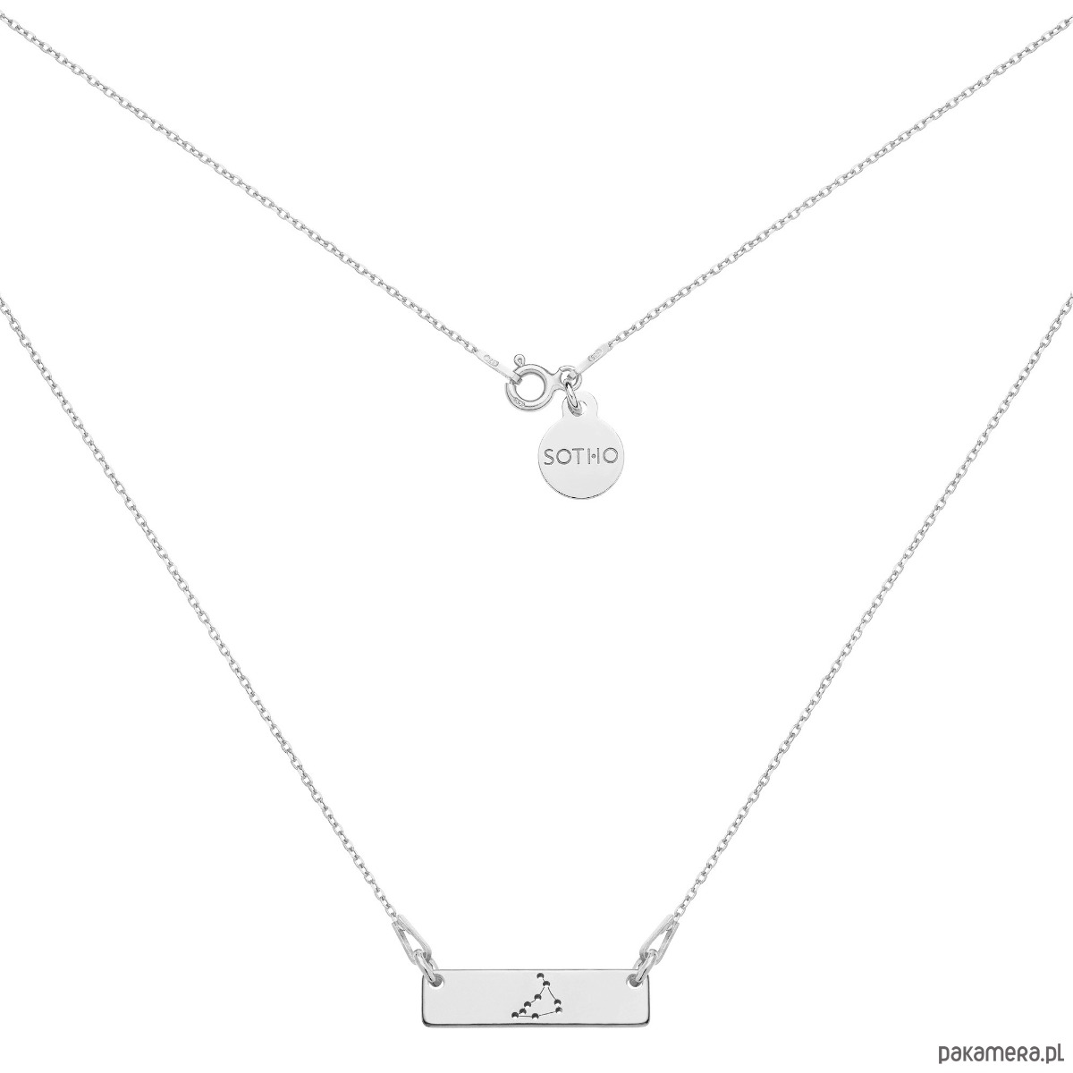 Srebrny naszyjnik łańcuszkowy zdobiony konstelacją zodiakalną Koziorożca i zawieszką z logo marki. Całość wykonana ze srebra 925.