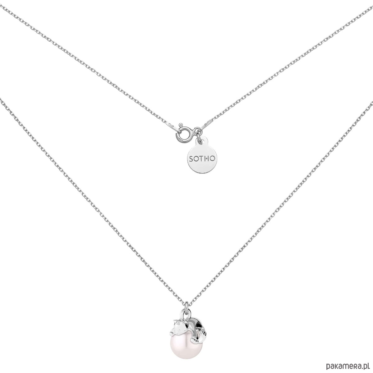 Srebrny naszyjnik z kotkiem i perłą SWAROVSKI CRYSTAL
