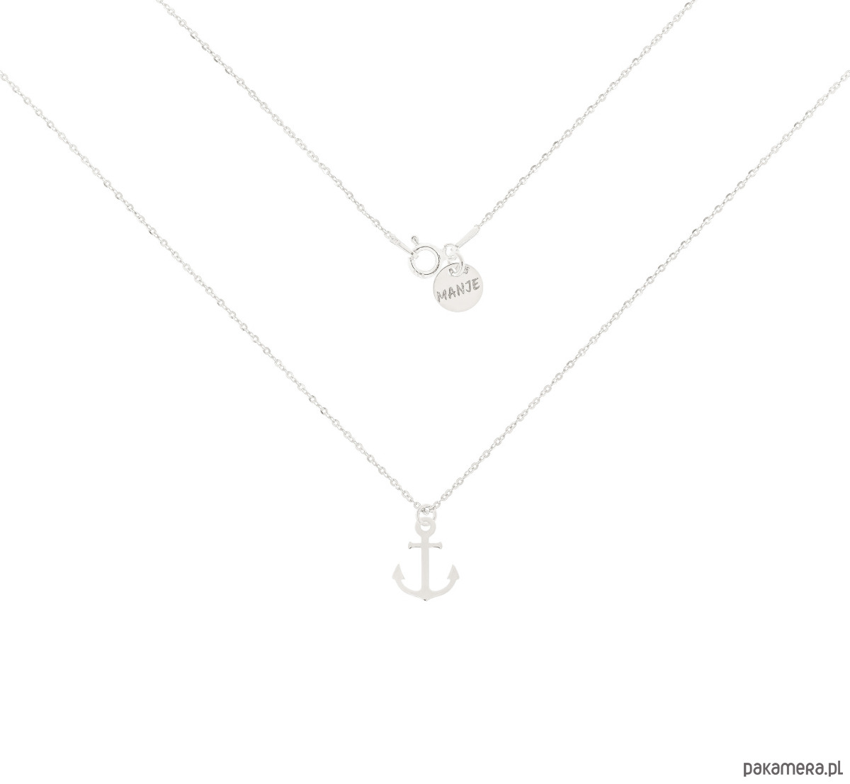 Srebrny naszyjnik z kotwicą. Wykonany ze srebra próby 925.