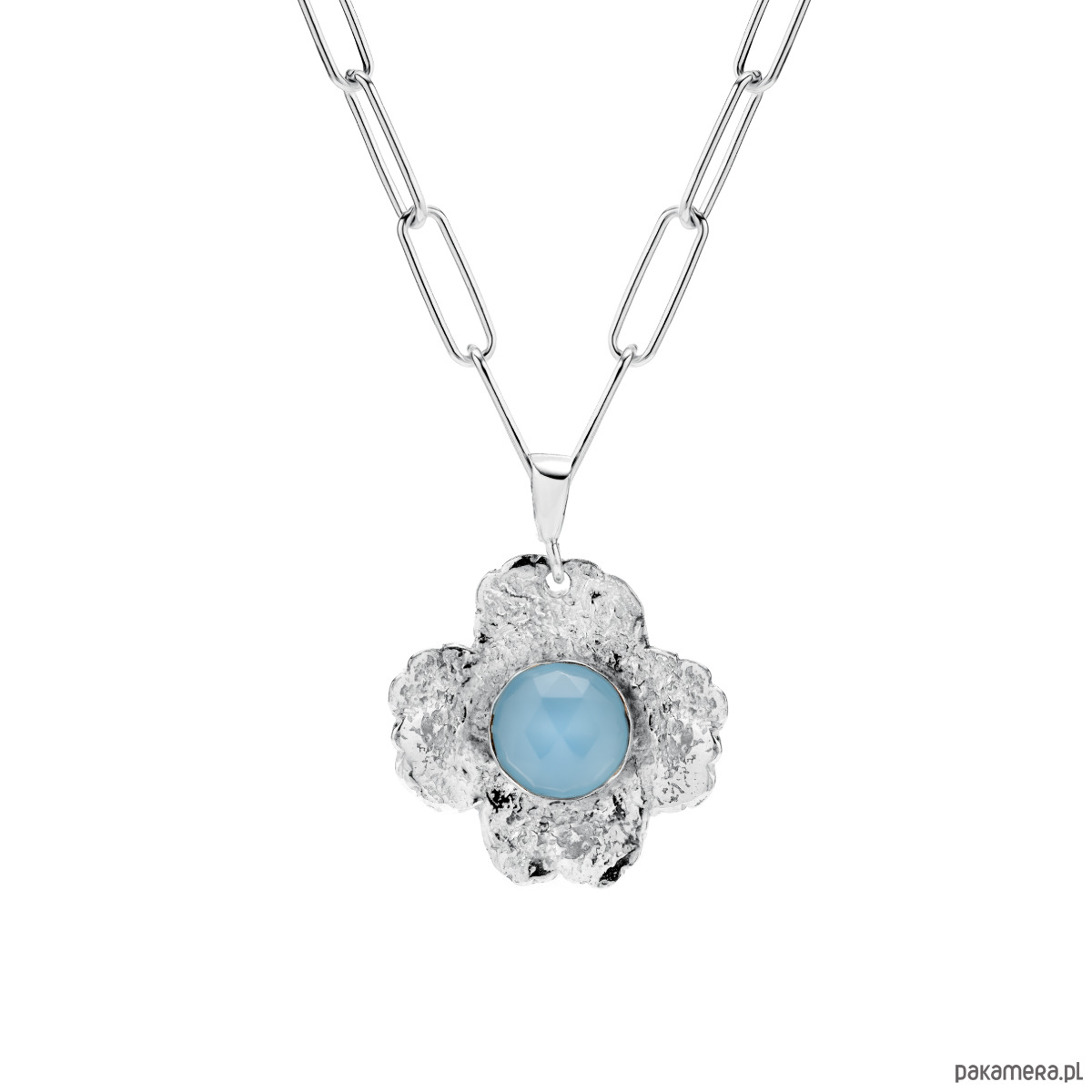 Srebrny naszyjnik z kwiatem i kamieniem BLOSSOM to odważna, a jednocześnie subtelna forma, która łączy w sobie botaniczną inspirację z nowoczesnym charakterem. Centralnym elementem naszyjnika jest ręcznie formowany kwiat – jego nieregularny kształt i wyczuwalna pod palcami faktura sprawiają, że każdy egzemplarz jest niepowtarzalny. Dzięki masywnemu łańcuszkowi w formie spinaczy naszyjnik zyskuje wyrazisty wygląd, który doskonale uzupełnia zarówno codzienne, jak i bardziej odważne stylizacje.