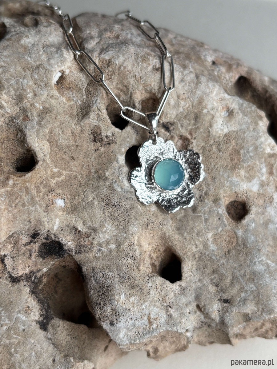 Naszyjnik srebrny kwiat z naturalnym kamieniem.