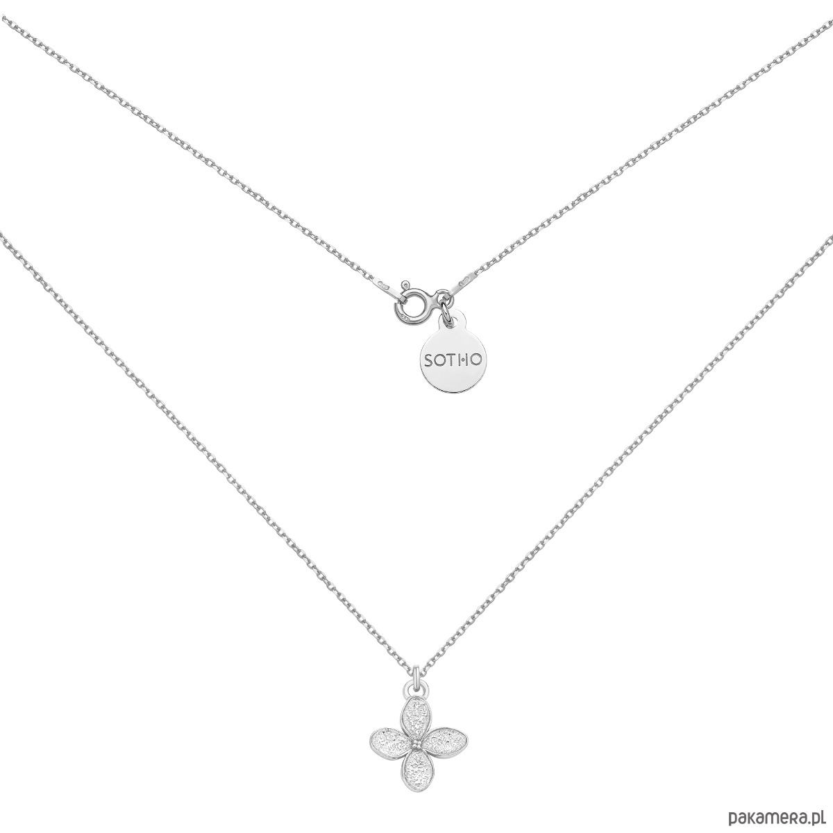 Srebrny naszyjnik z kwiatkiem. Całość wykonana ze srebra 925.