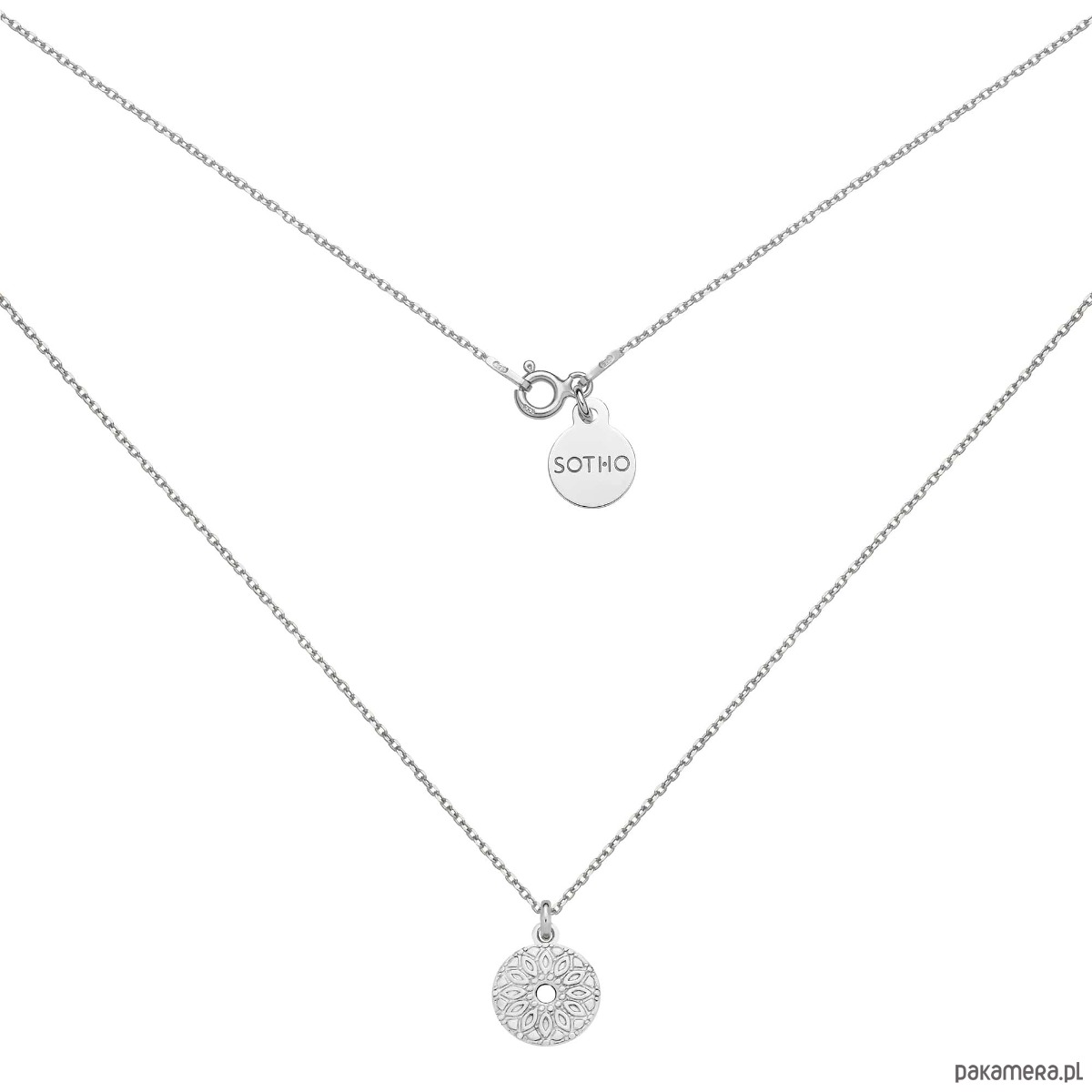 Srebrny naszyjnik łańcuszkowy z medalionem i zawieszką z logo marki. Całość wykonana ze srebra 925