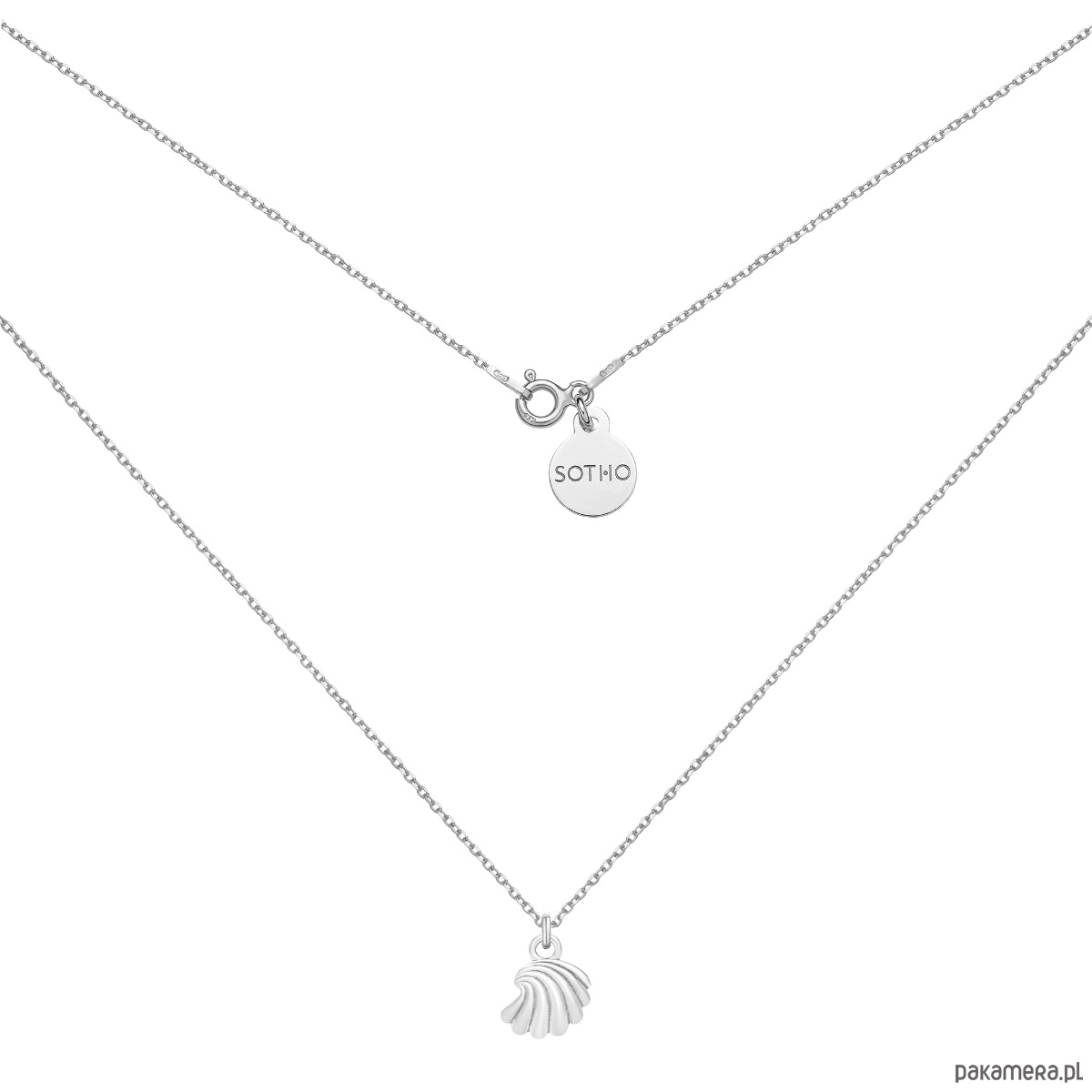 Srebrny naszyjnik z muszelką. Całość wykonana ze srebra 925.
