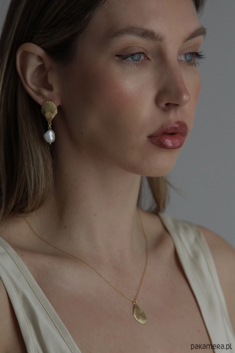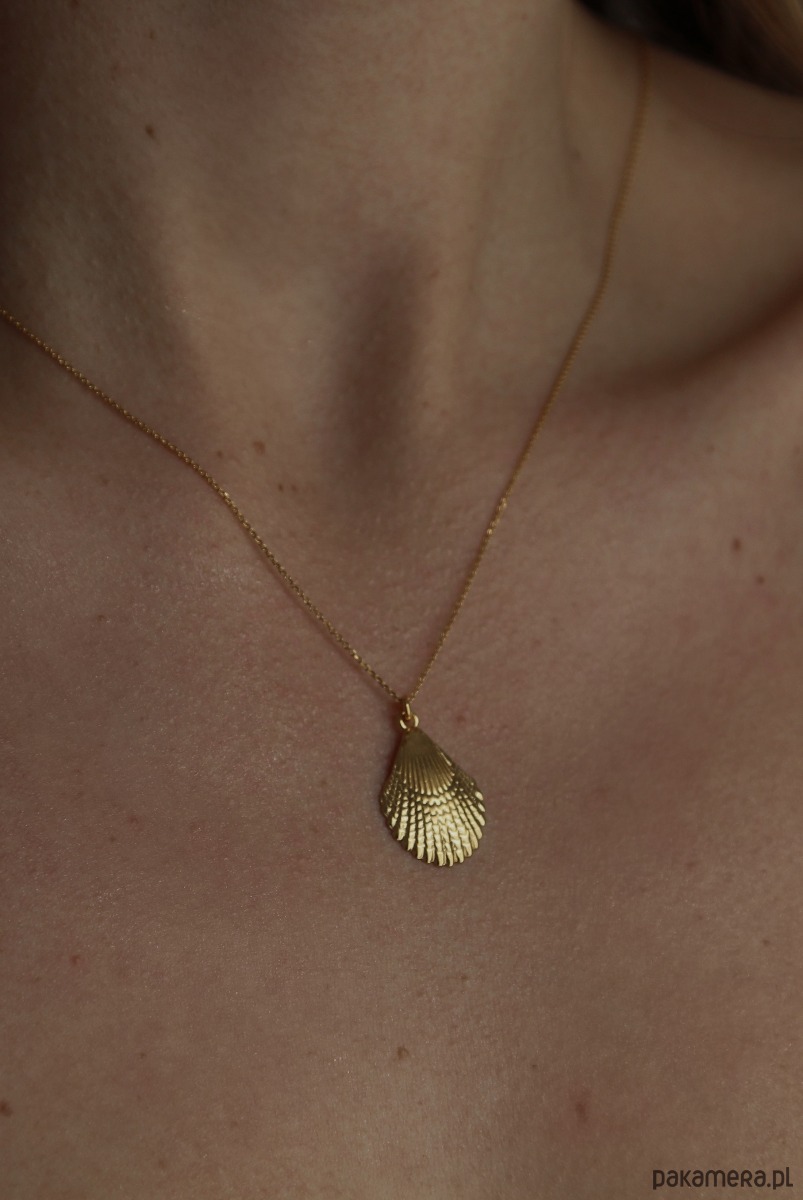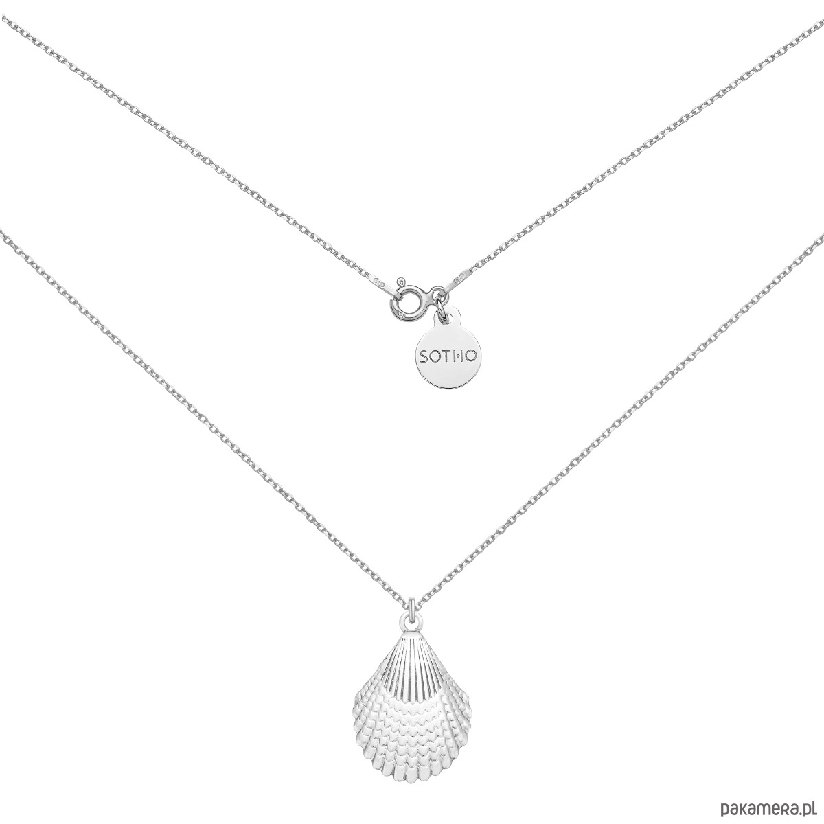 Srebrny naszyjnik z muszlą. Całość wykonana ze srebra 925.
