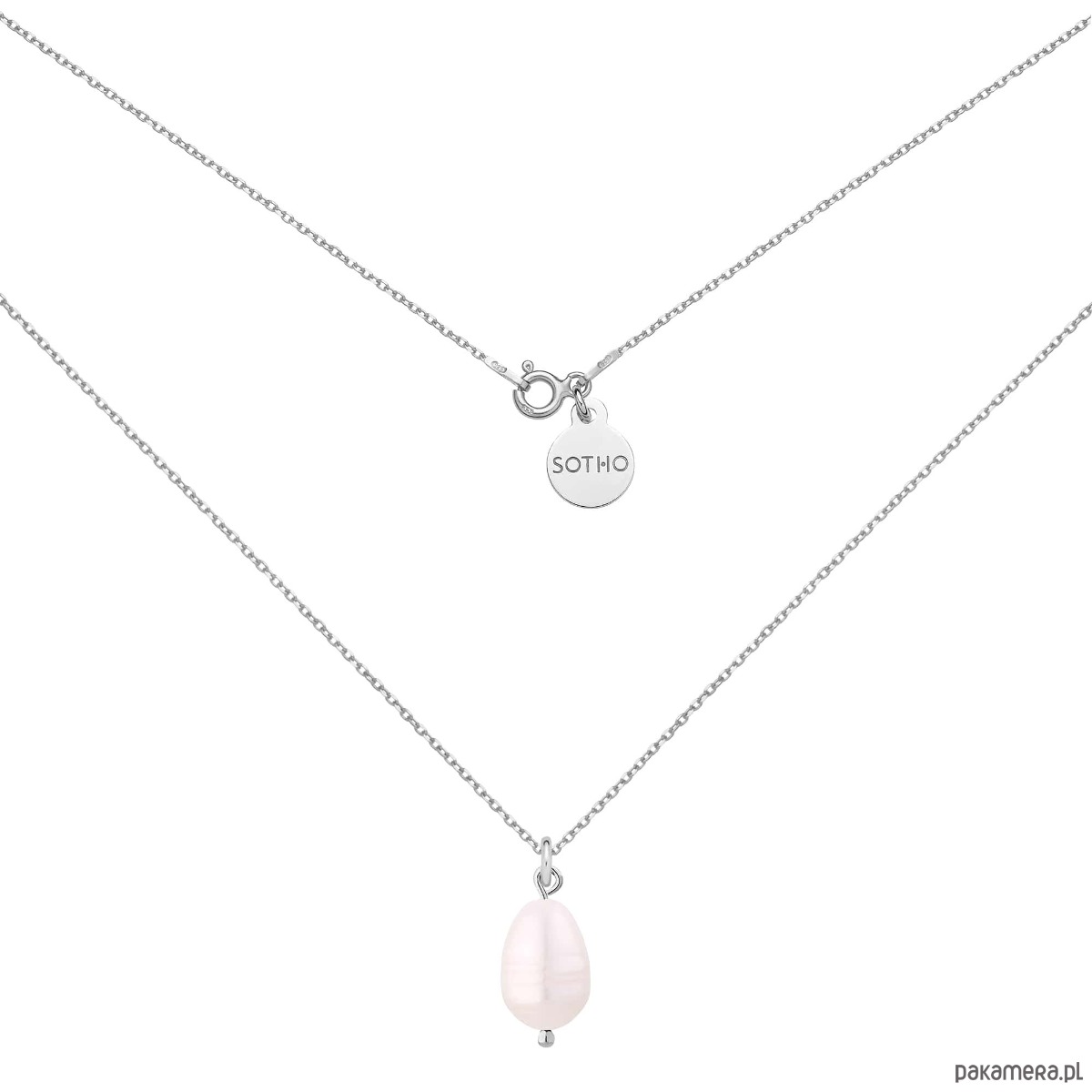 Srebrny naszyjnik z naturalną perłą. Całość wykonana ze srebra 925.