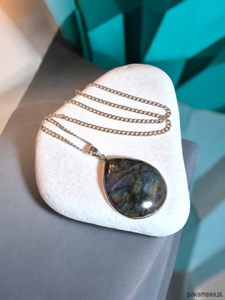Srebrny naszyjnik z naturalnym labradorytem