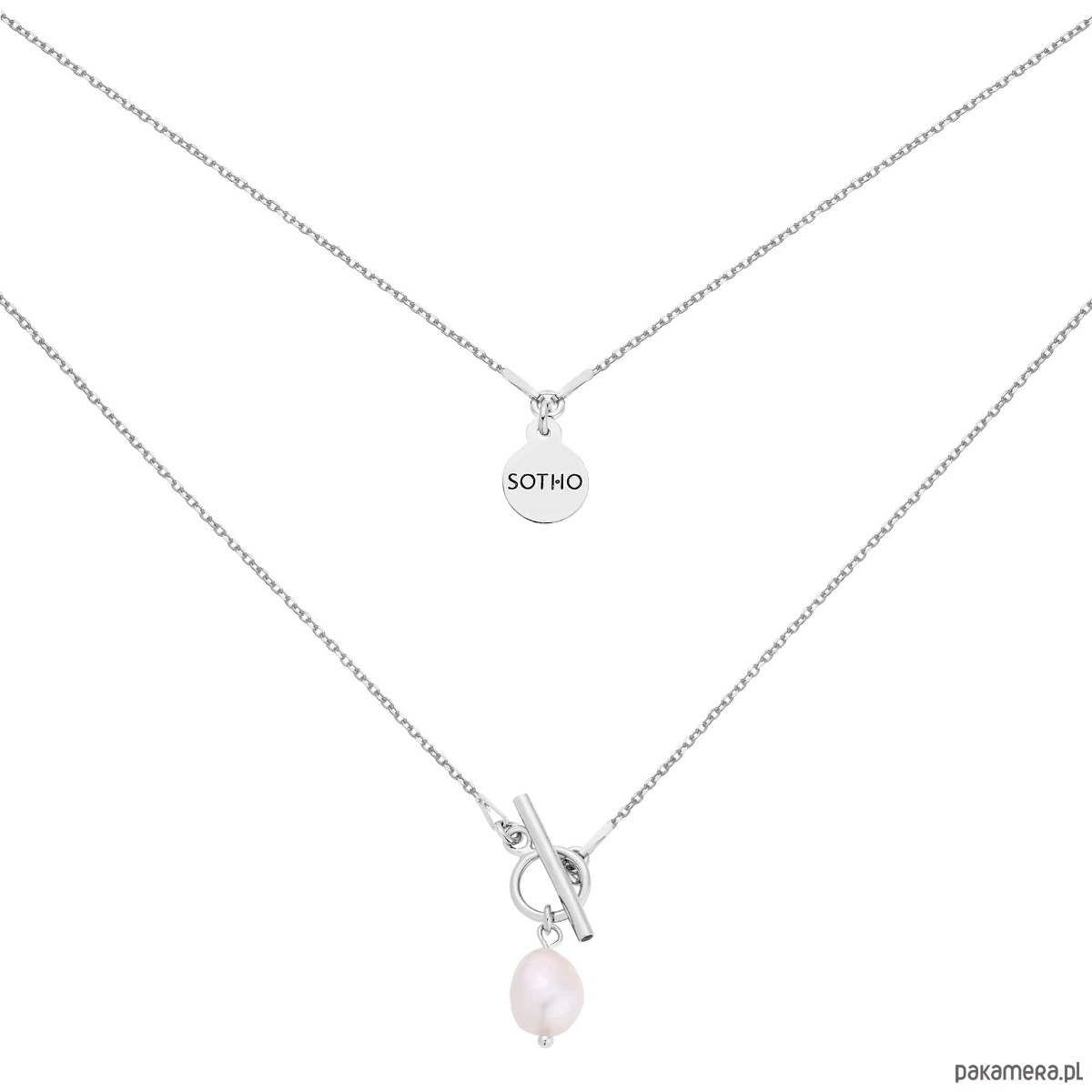 Srebrny naszyjnik z ozdobnym zapięciem i naturalną perłą