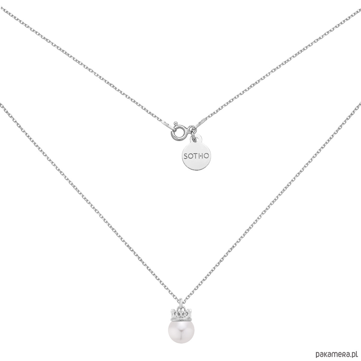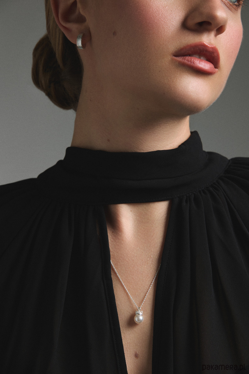 Srebrny naszyjnik z perłą w koronie