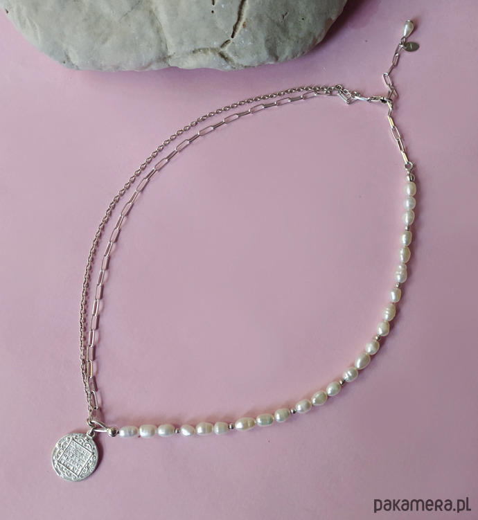 Naszyjnik wykonany jest ze srebra pr 925 i naturalnych pereł.