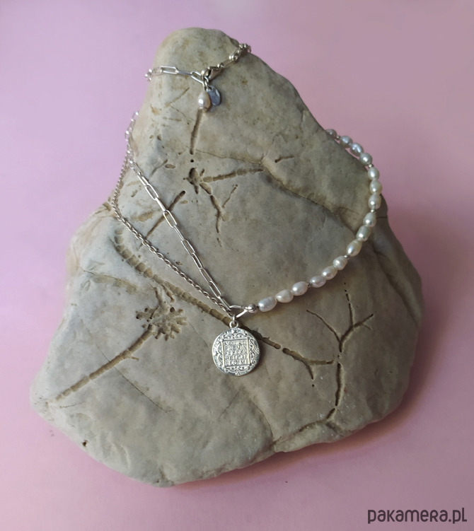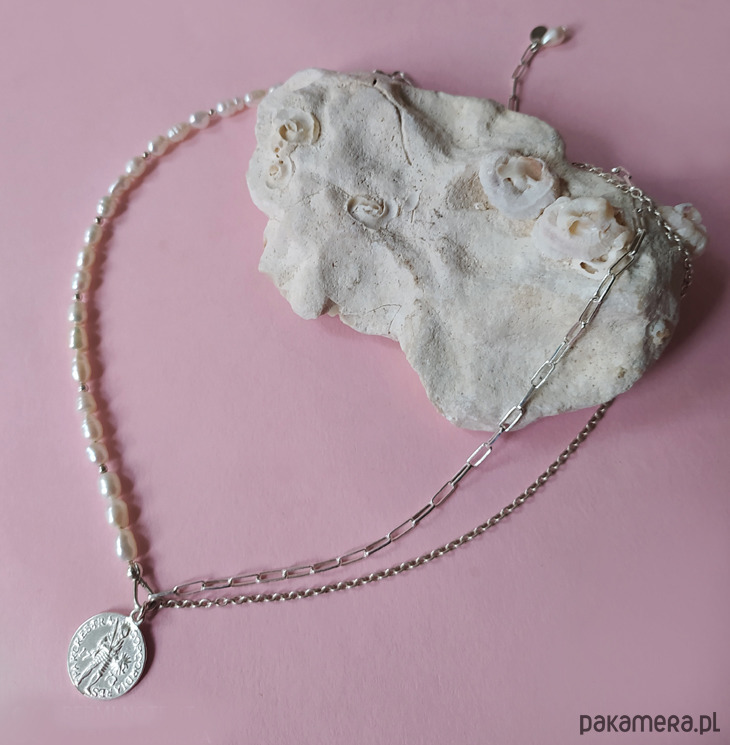 Naszyjnik wykonany jest ze srebra pr 925 i naturalnych pereł.