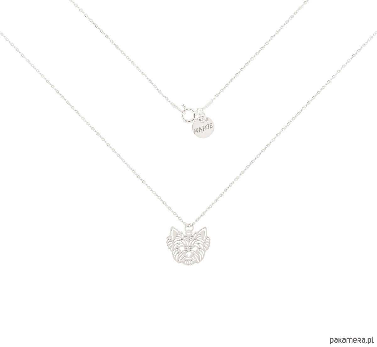 Srebrny naszyjnik z psem rasy Yorkshire Terrier. Wykonany ze srebra próby 925.