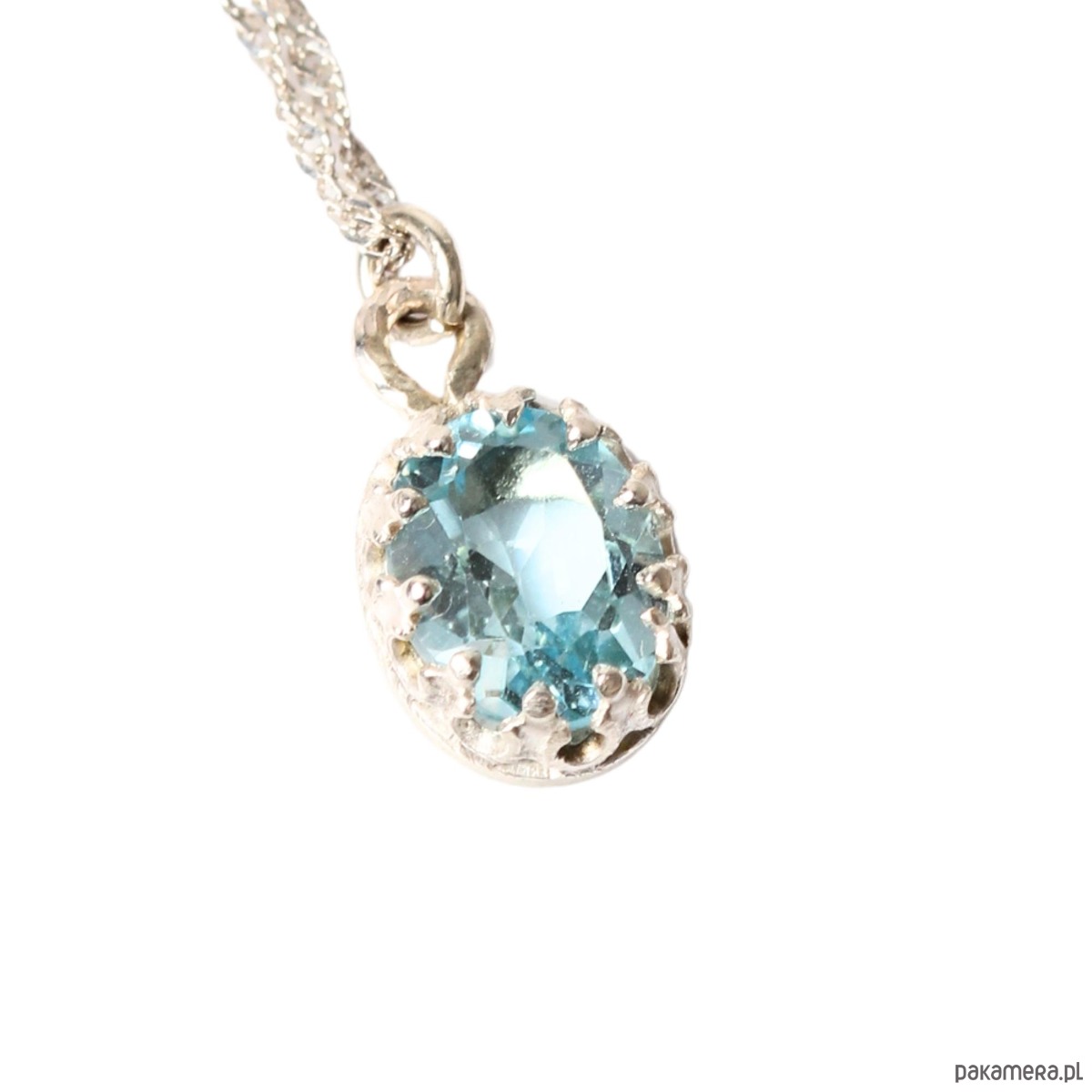 Srebrny naszyjnik z topazem niebieskim w stylu Vintage