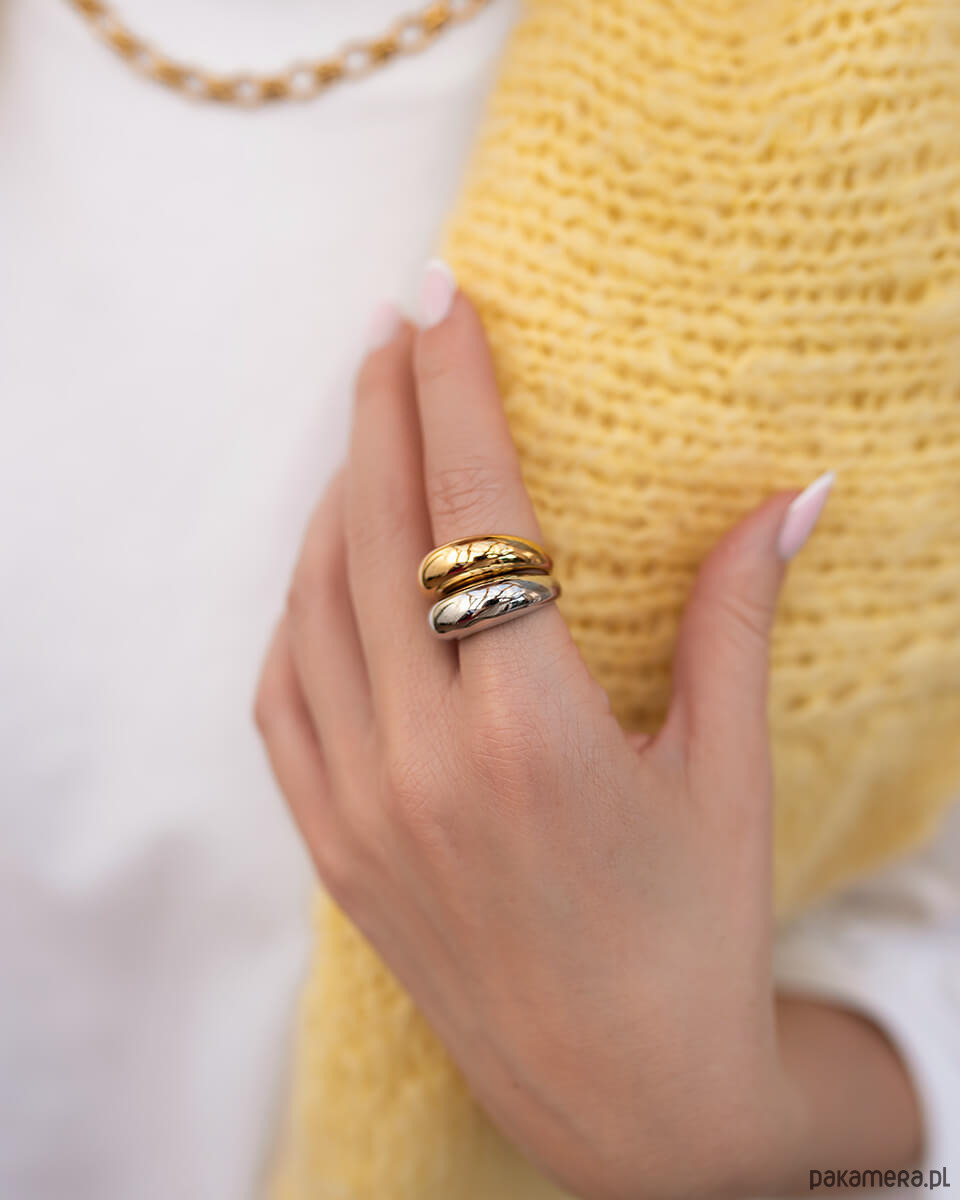 Dlaczego warto go mieć?Wykonany z trwałej stali chirurgicznej – nie ciemnieje, nie ściera się, nie uczulaZłota powłoka nanoszona metodą PVD – odporna na wodę, pot, kosmetyki i codzienne użytkowaniePonadczasowy design – pasuje na każdą okazję: do pracy, na randkę, na prezentDzięki zaokrąglonemu profilowi komfortowo leży na palcuOdporny na zarysowania – idealny dla kobiet aktywnych, które nie chcą martwić się o delikatną biżuterię
