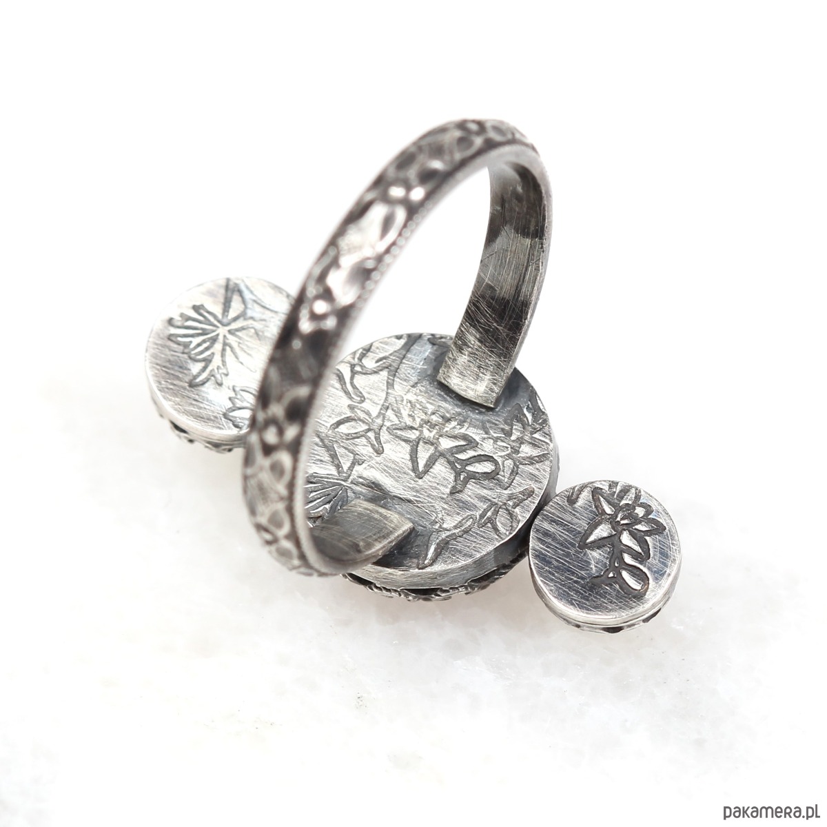 Spód pierścionka ozdobiony kwiatami aby dodać mu jeszcze bardziej unikatowego charakteru (każdy egzemplarz jest zdobiony w inny sposób:)