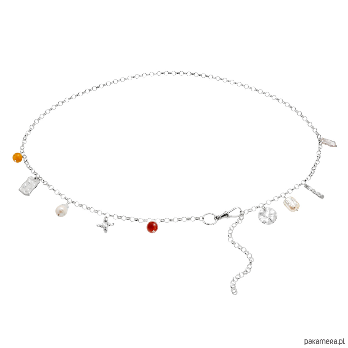 Pasek z perłami, agatami i nieregularnymi zawieszkami. Srebro 925.