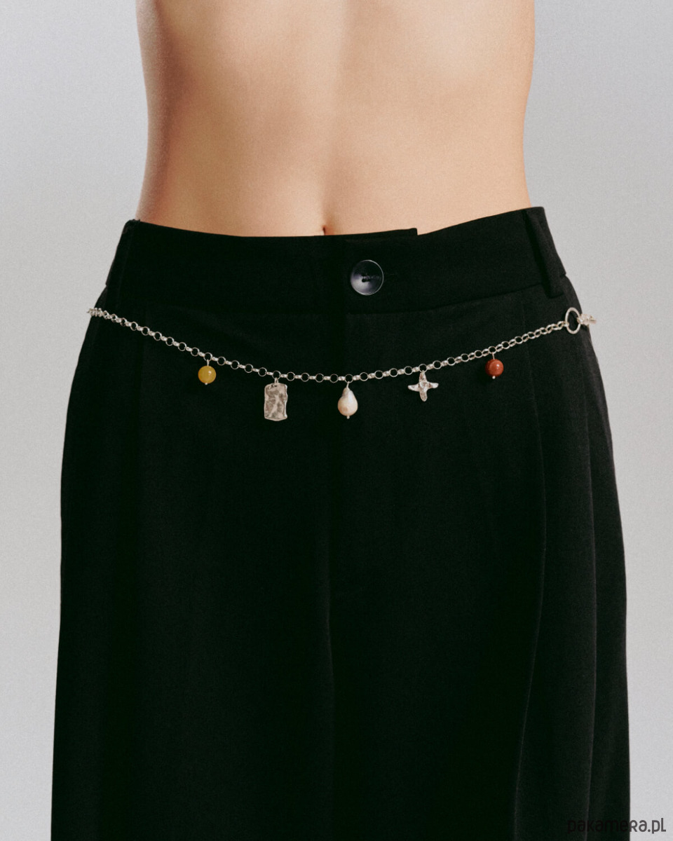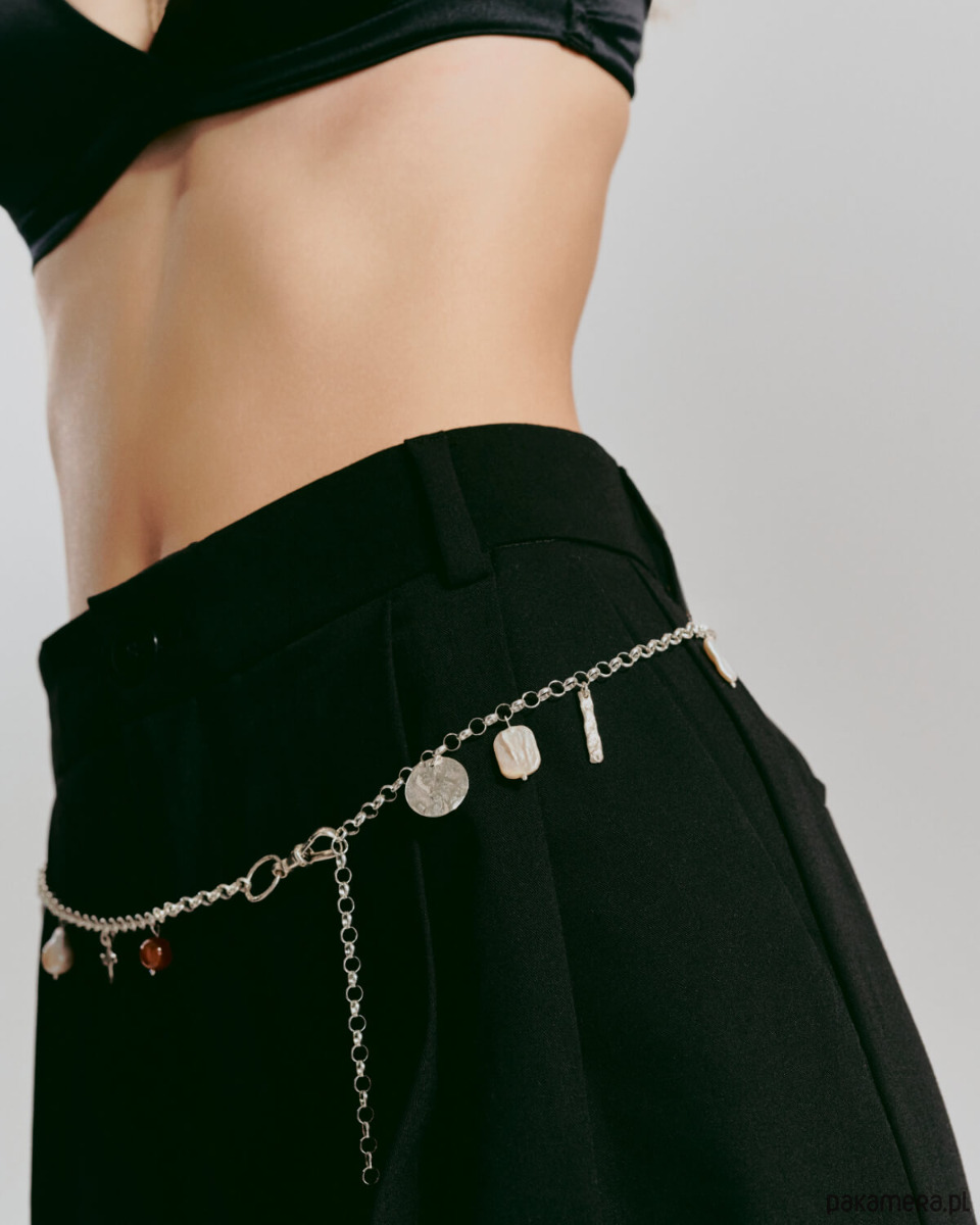 Srebrny pasek z zawieszkami i kamieniami możesz nosić na wiele sposobów. Każdy szczegół został starannie wykonany w naszej pracowni, a zestawienie różnych materiałów nadaje paskowi niepowtarzalny charakter – idealny do podkreślenia niestandardowych stylizacji. Srebrne zawieszki powstają poprzez topienie srebra, dzięki czemu każdy pasek jest inny, niepowtarzalny.