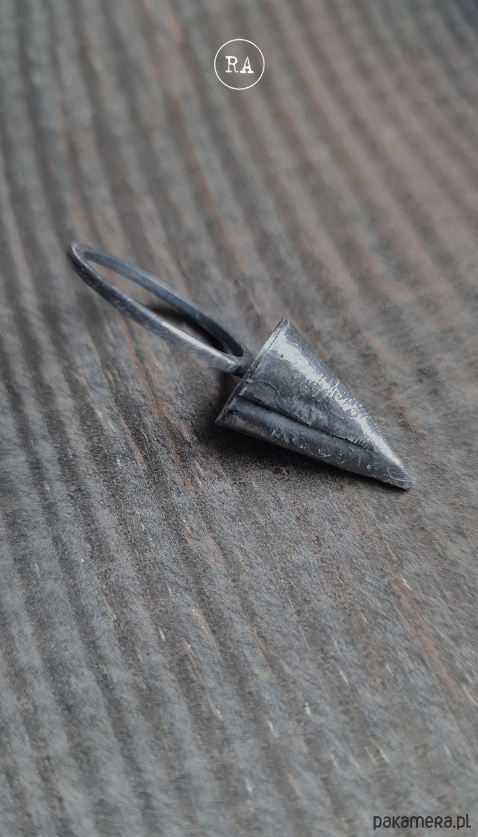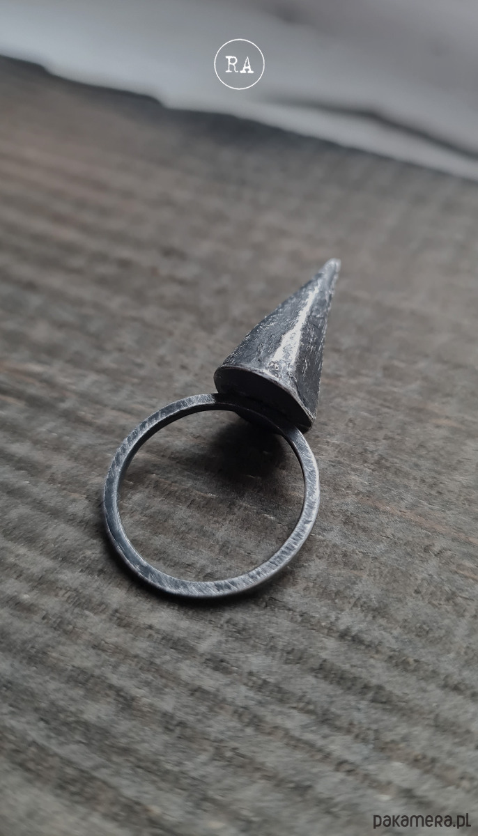 Pierścionek wykonany ręcznie ze srebra, oksydowany. Rozmiar 14. Inny rozmiar - do negocjacji :)