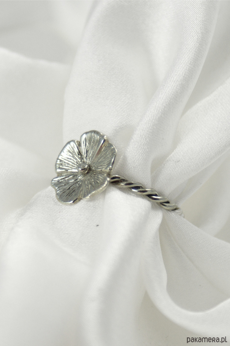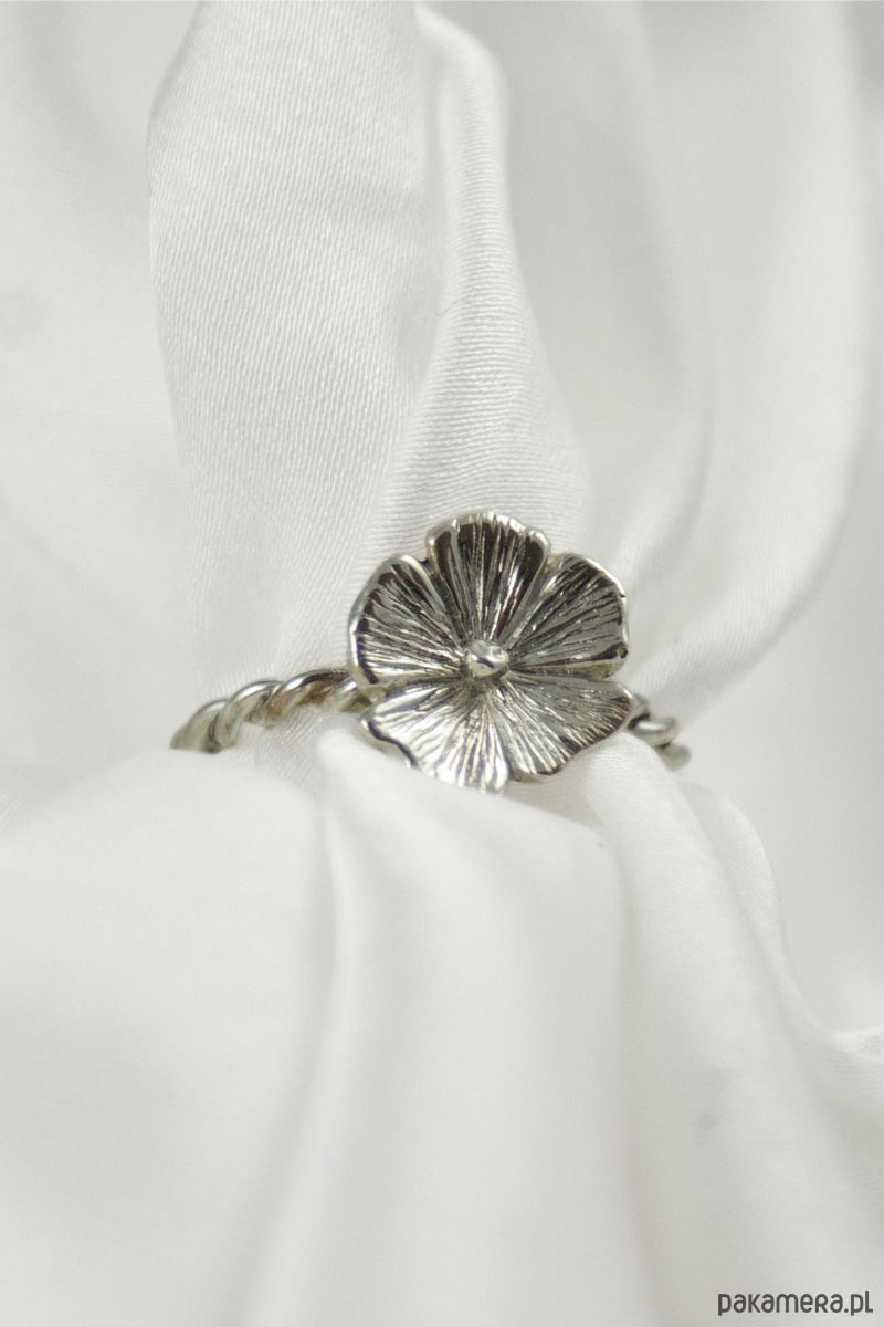 Srebrny pierścionek Cosmos, z kwiatem, polny kwiat, wiosenny, HerRing