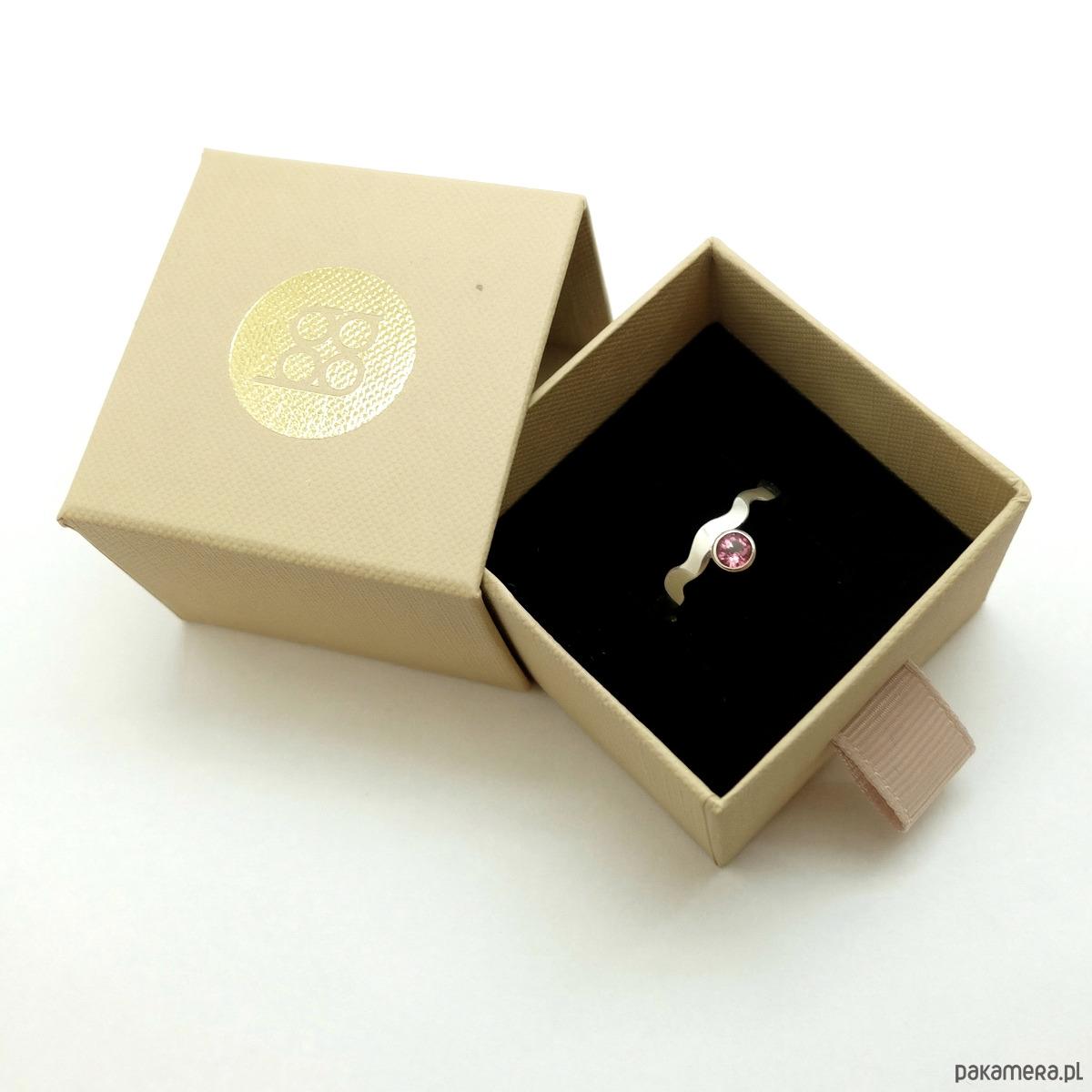 Unikatowa biżuteria wykonana jest ręcznie z najwyższą dbałością o detale i wraz z dowodem zakupu zapakowana w eleganckie firmowe pudełko. Damy o ekologię: całość opakowania biżuterii jest wykonana z papieru. Każdy pierścionek ma wybitą próbę stopu metalu szlachetnego, z którego jest wykonany oraz imiennik autorki (bw.).