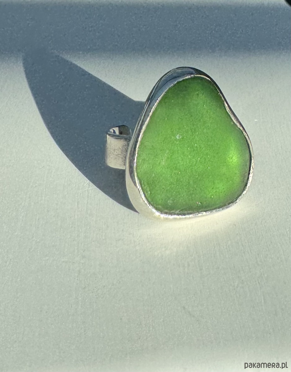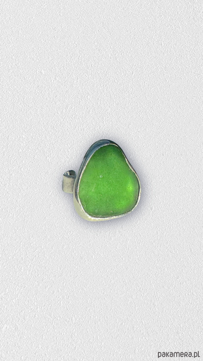 Srebrny pierścionek regulowany ze szkłem morskim