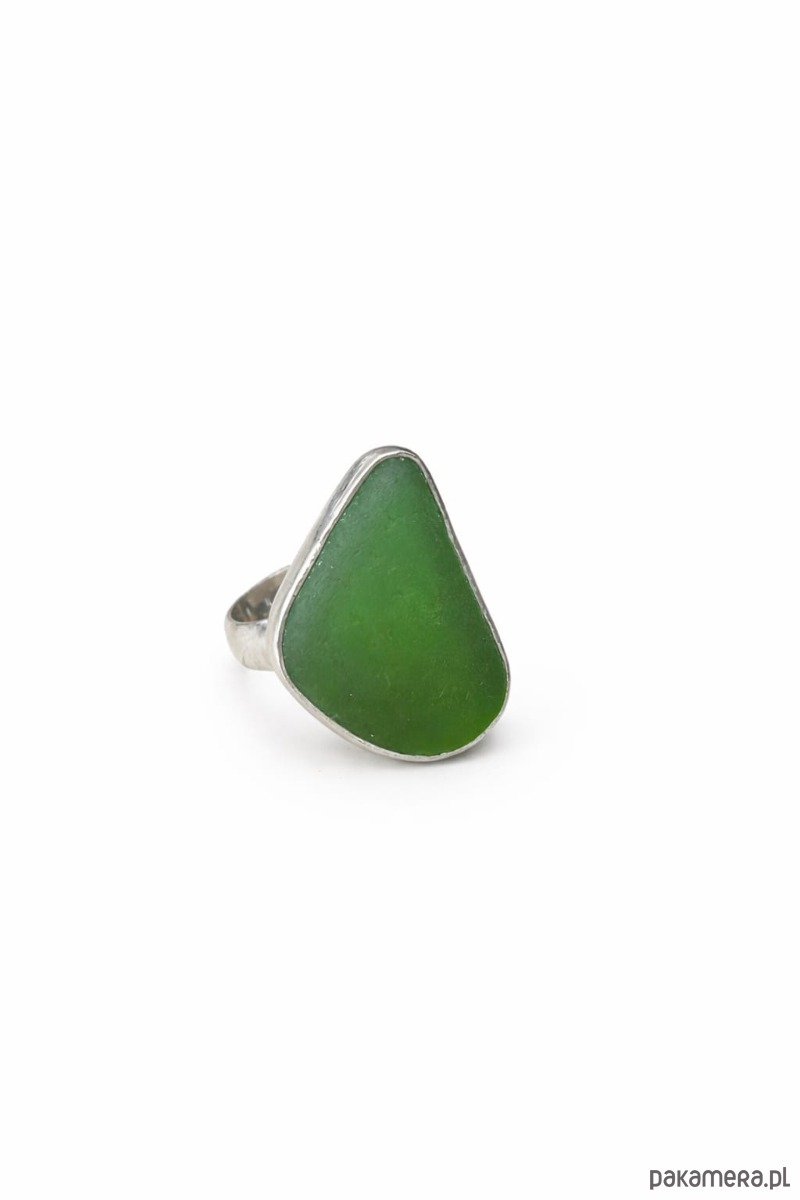 Srebrny pierścionek regulowany ze szkłem morskim