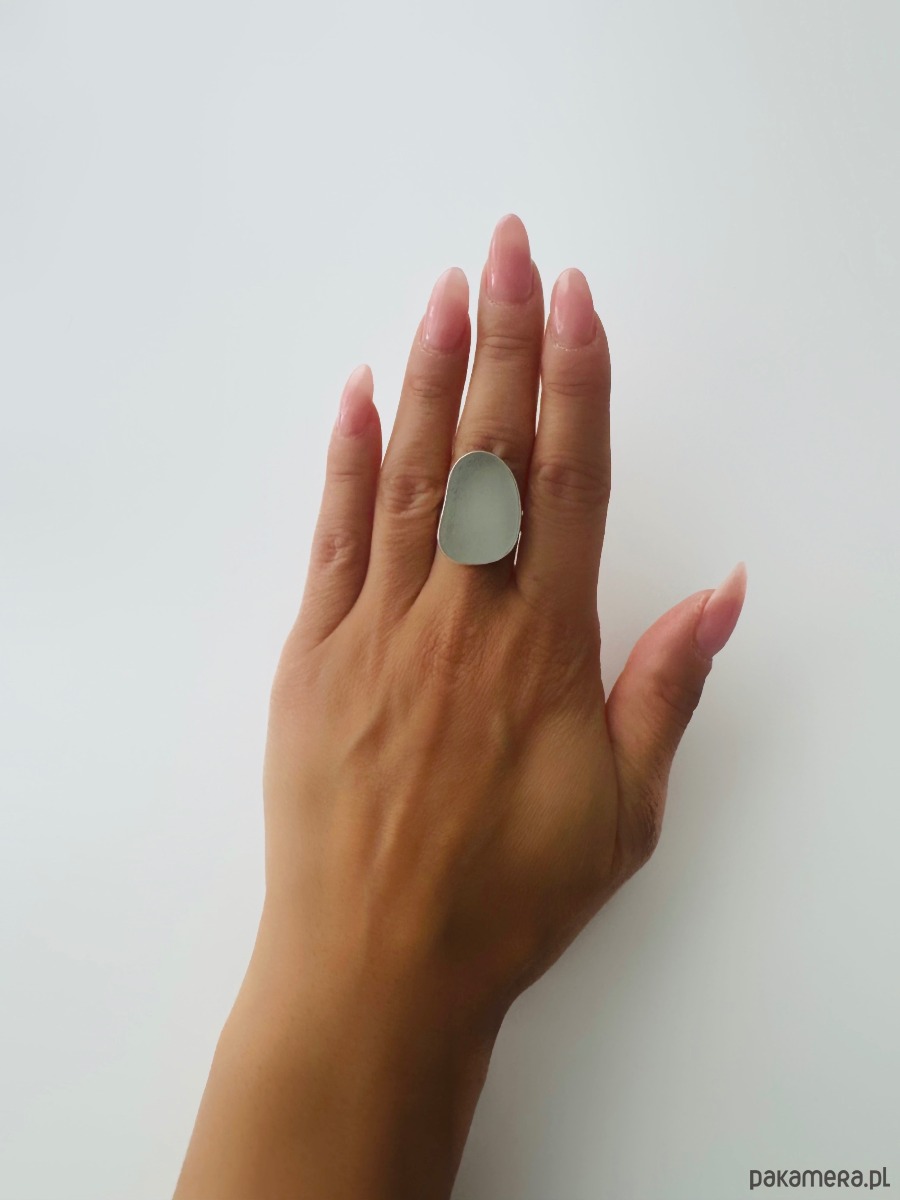 Srebrny pierścionek regulowany ze szkłem morskim