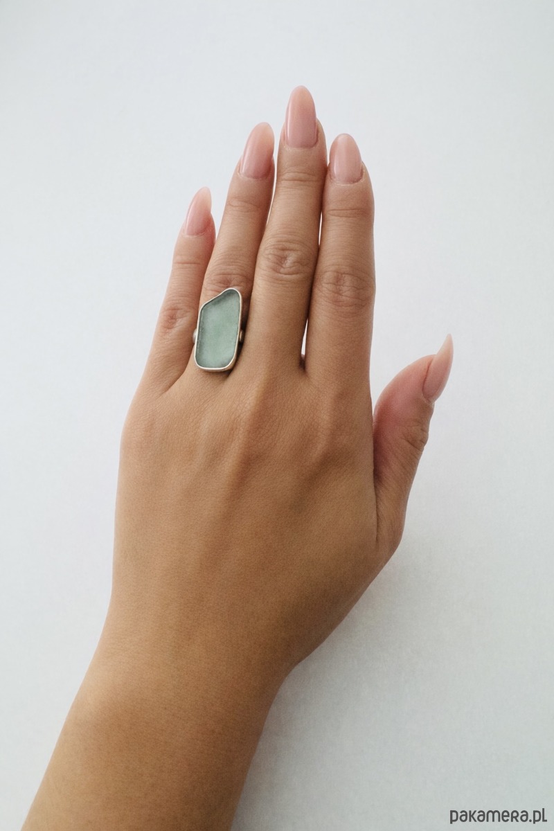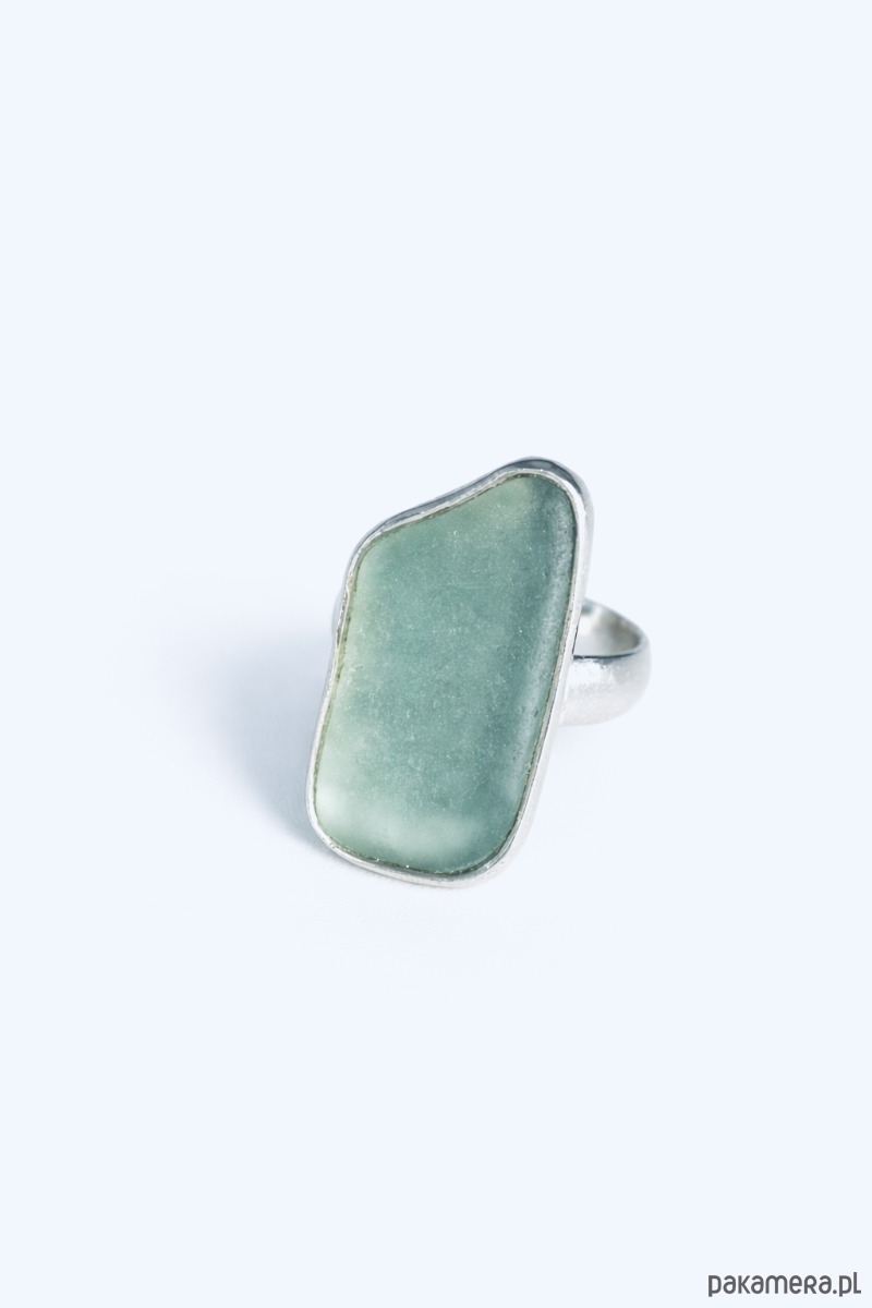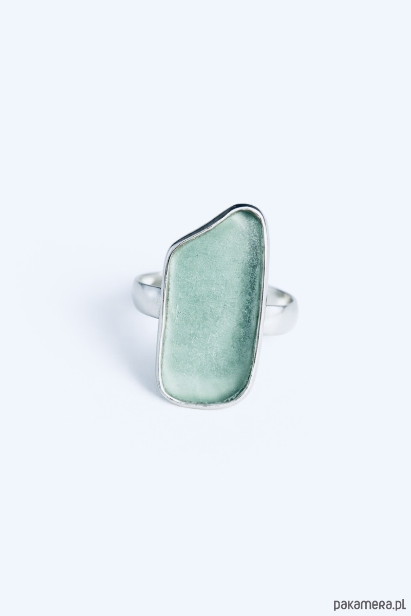 Srebrny pierścionek regulowany ze szkłem morskim