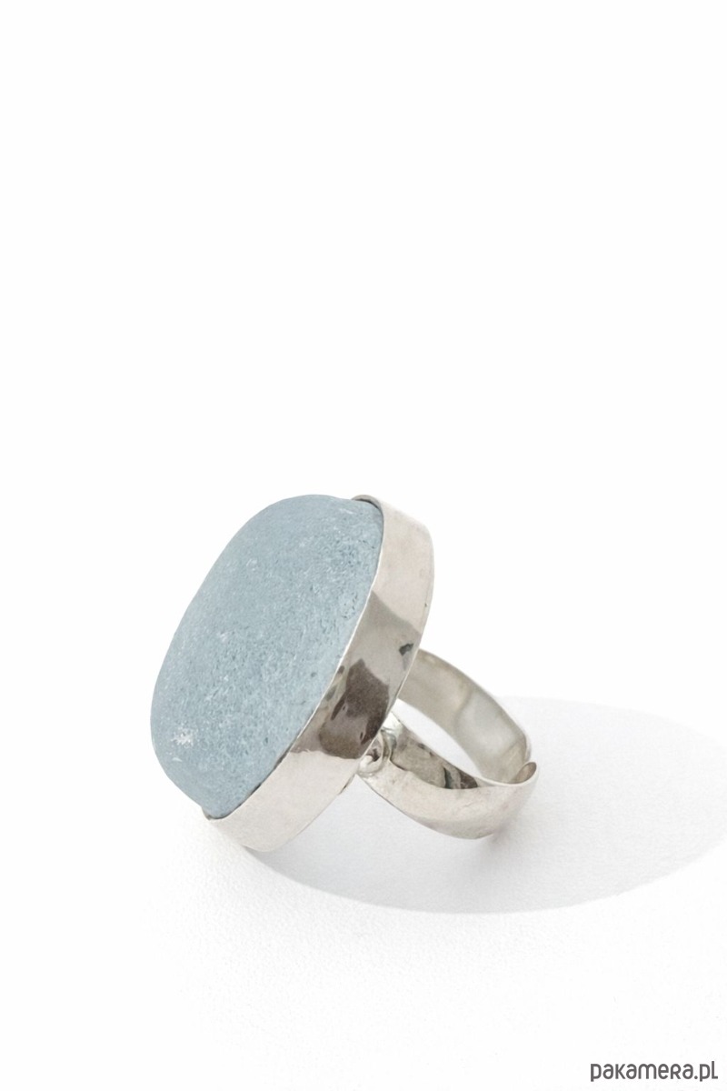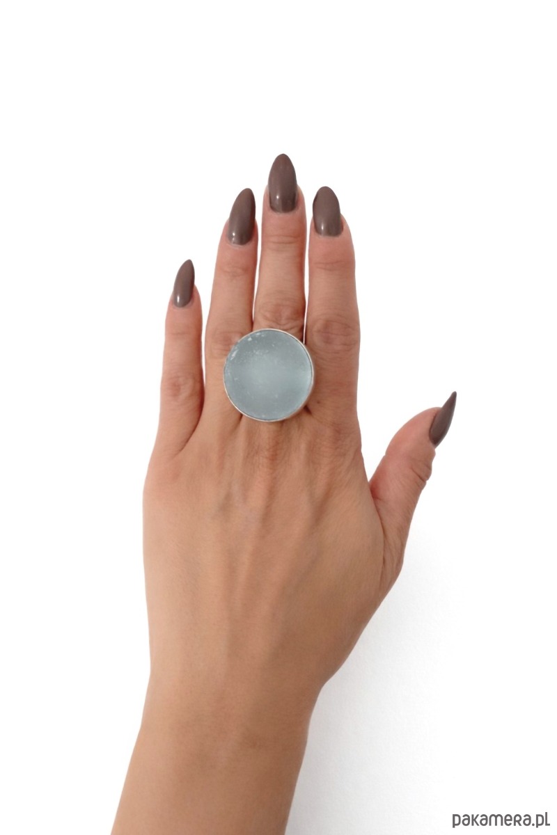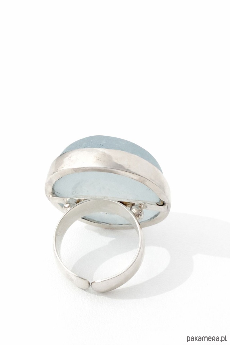 Srebrny pierścionek regulowany ze szkłem morskim