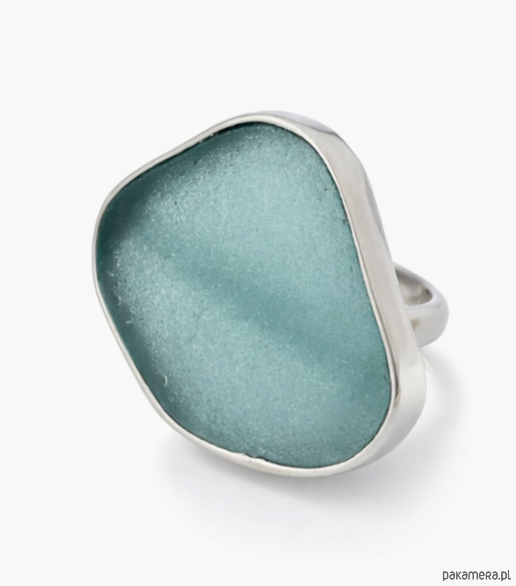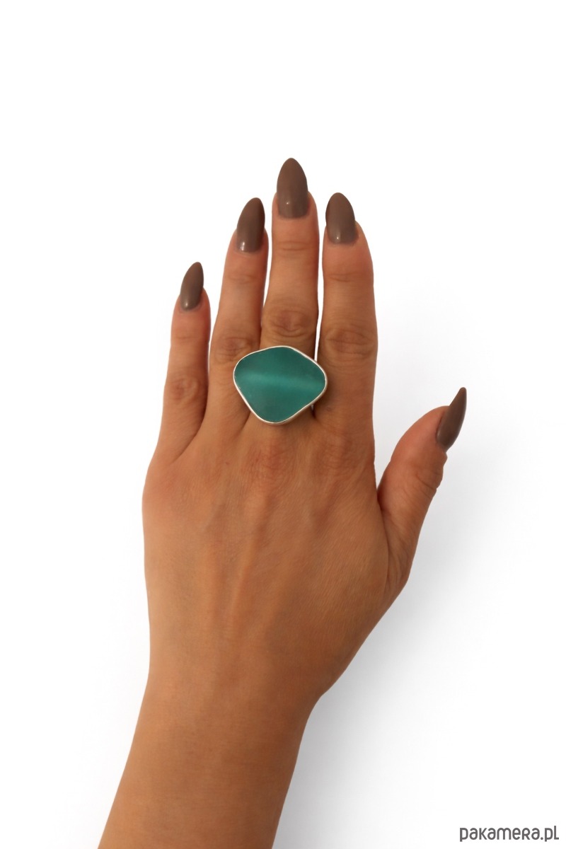 Srebrny pierścionek regulowany ze szkłem morskim