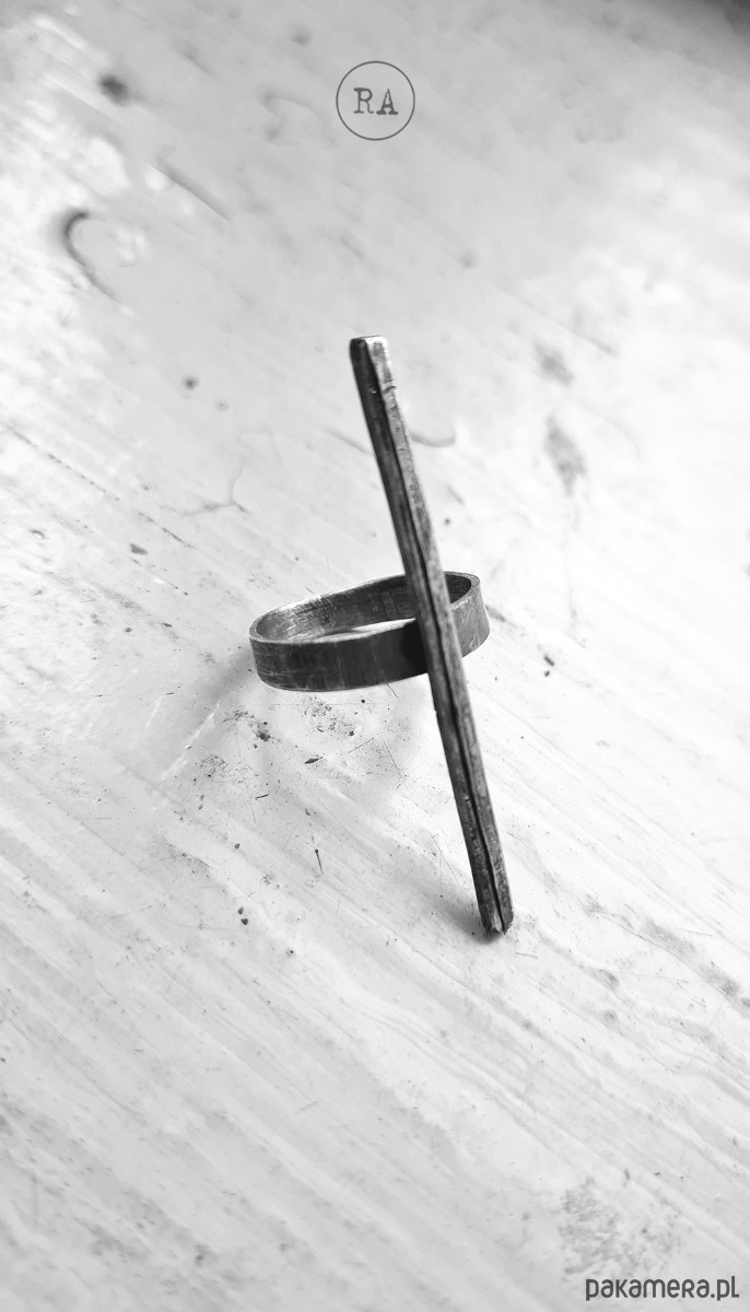 Pierścionek wykonany ręcznie ze srebra, oksydowany. Każdy rozmiar - po zakupie proszę o podanie ozmiaru z tabeli.