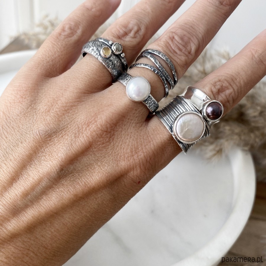 Pierścionek został skąpany w oksydzie oraz wypolerowany, przez co nabrał głębi i niepowtarzalnego charakteru.