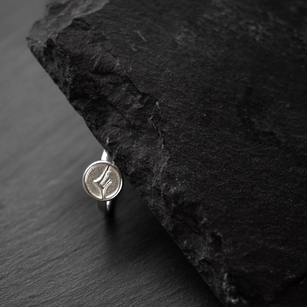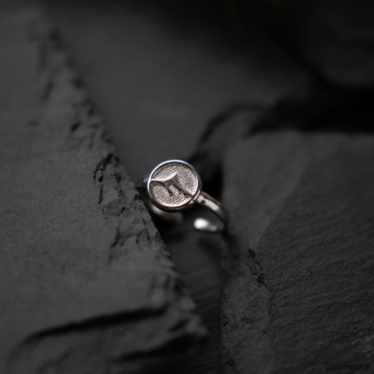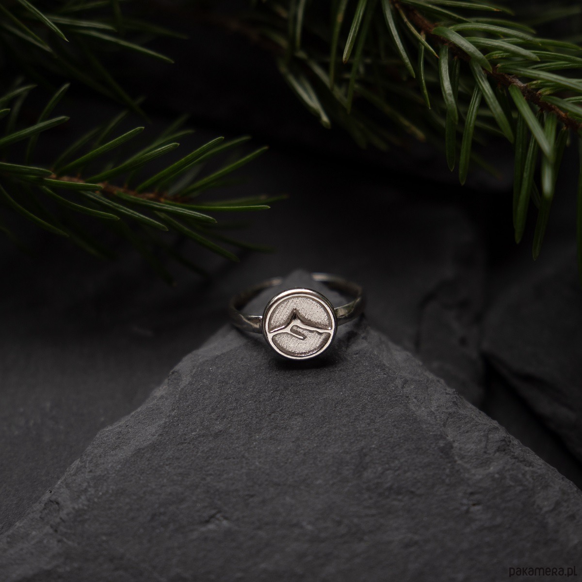 Pierścionek został wykonany ze srebra (925) i ozdobiony subtelnym motywem górskiego szczytu.