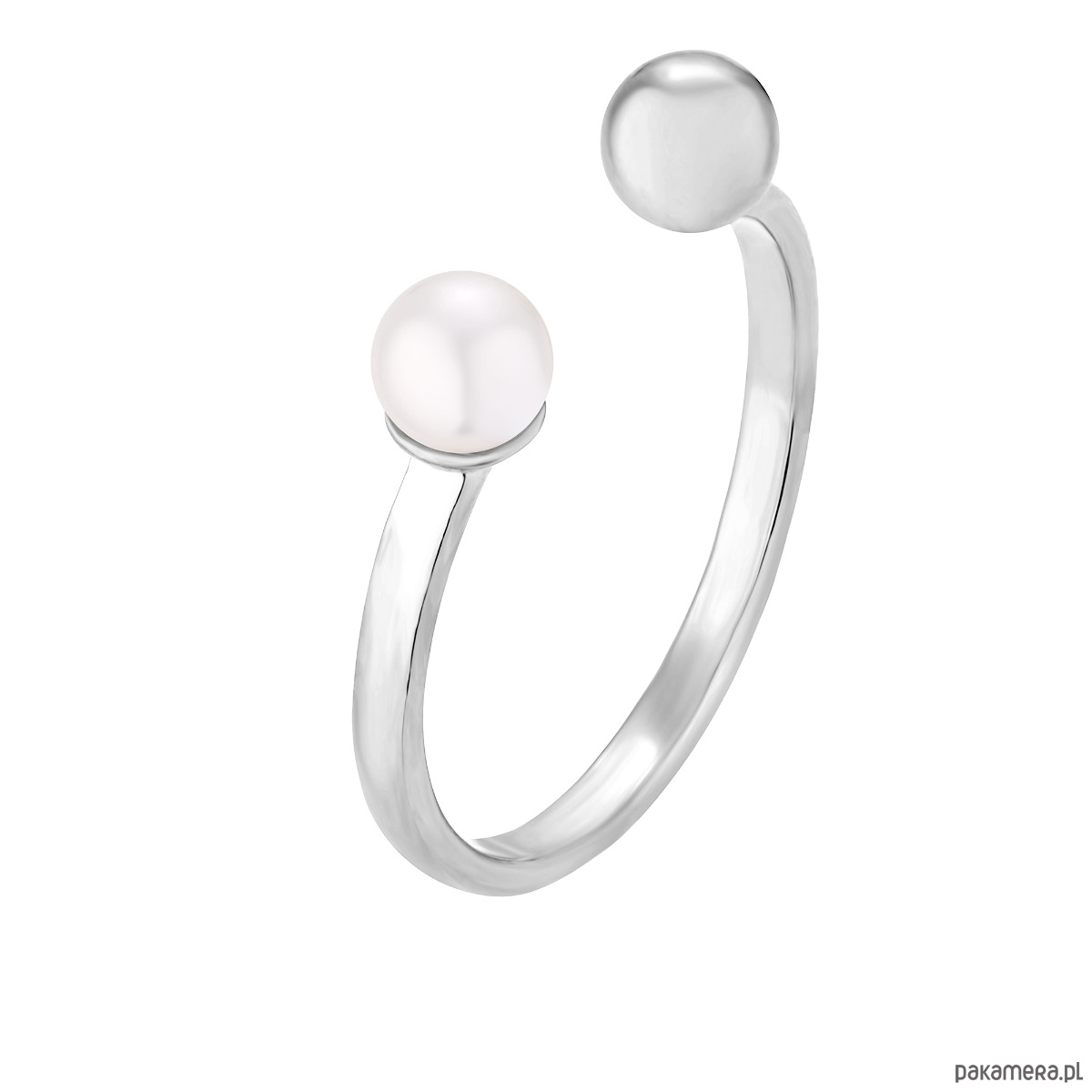 Srebrny pierścionek z kuleczką i białą perłą