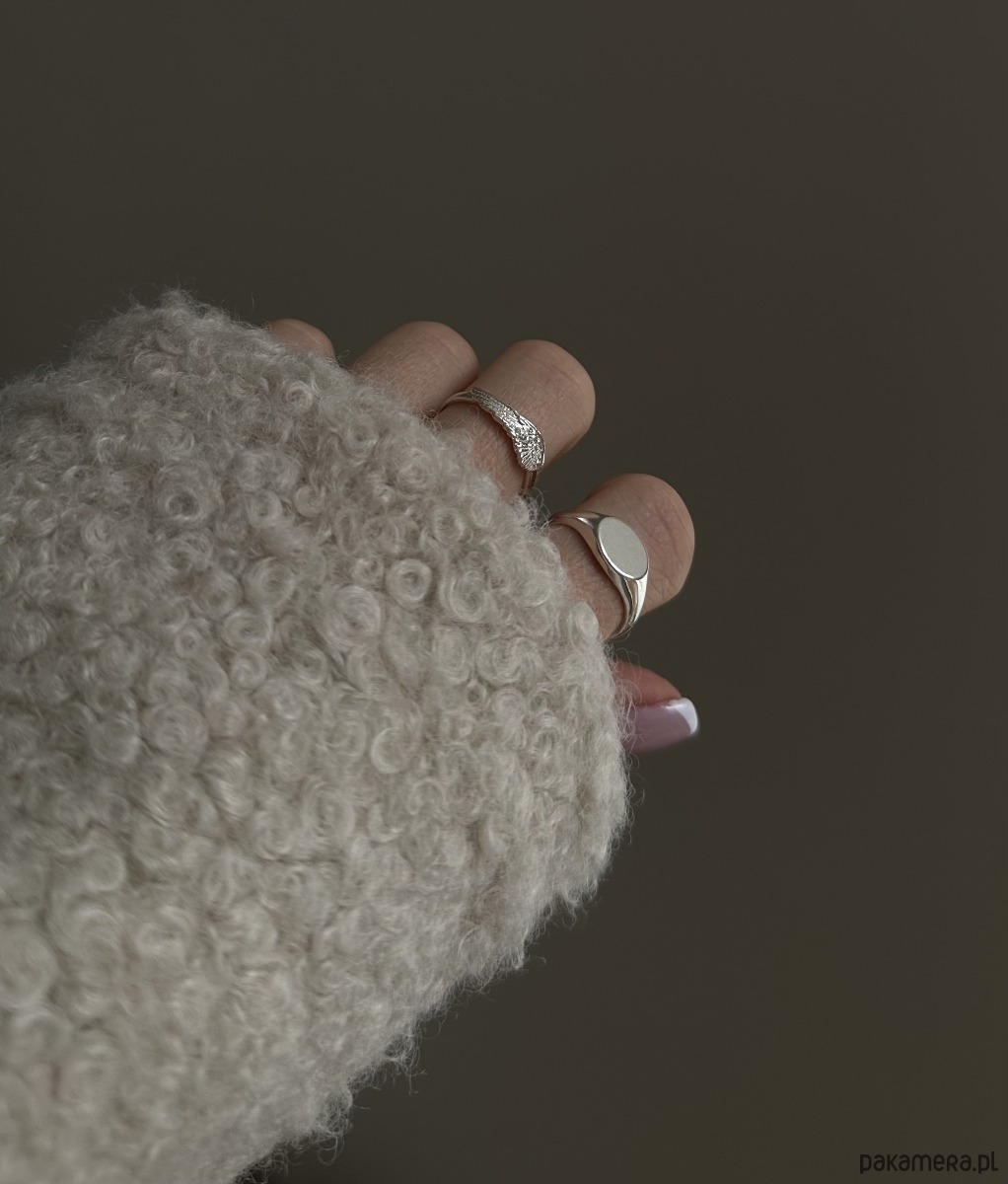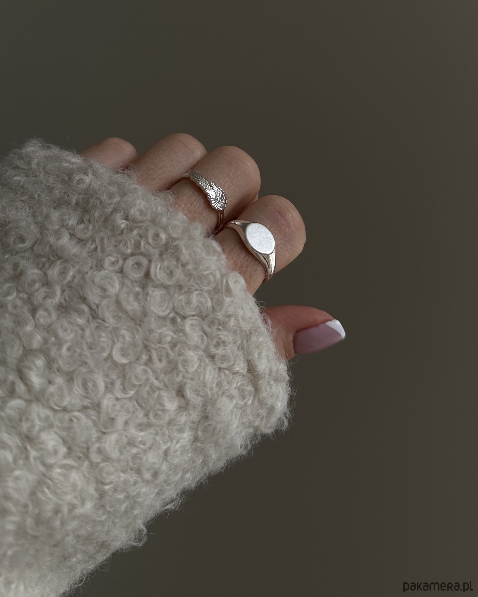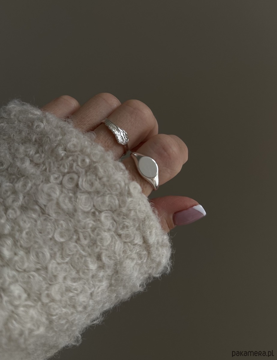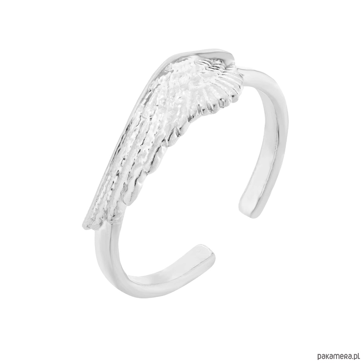 Srebrny pierścionek ze skrzydłem. Wszystkie elementy wykonane są ze srebra 925.