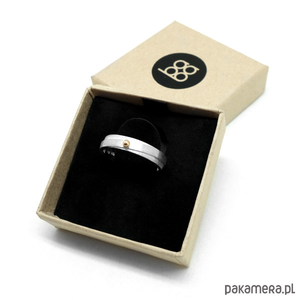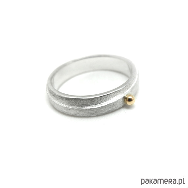 Minimalistyczny pierścionek srebrny ze złotą kulką. Prosty pierścionek należy do kolekcji Wstęgi i wyróżnia się prostotą formy. Jest szeroki na 4 mm. Jego powierzchnia jest delikatnie satynowana. Wykonany ze srebra próby 0,925 a kulka ze złota próby 0,585. Proszę podaj rozmiar jubilerski lub średnicę wewnętrzną pierścionka po złożeniu zamówienia - każdy rozmiar jest dostępny. Srebrny pierścionek wysłany jest w ozdobnym papierowym pudełku oraz papierowej kopercie - dbamy o środowisko.