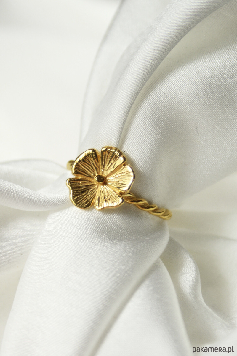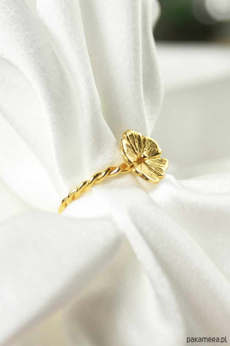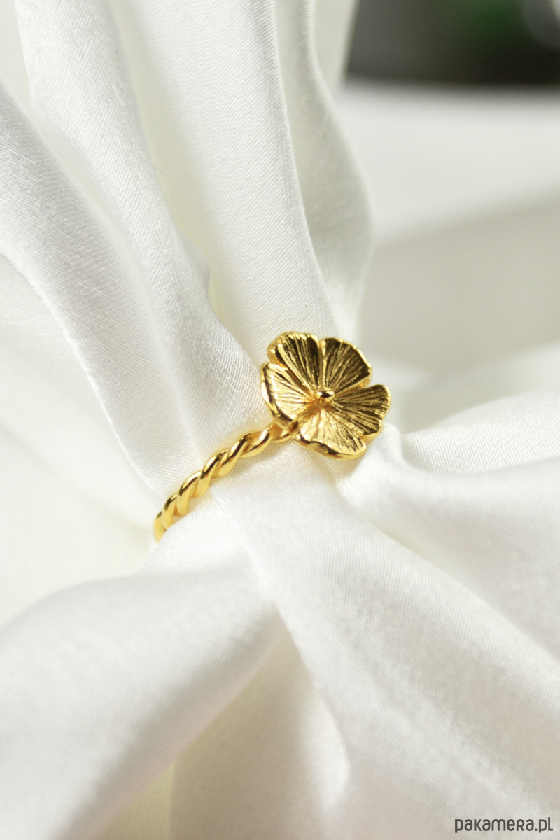 Pierścionek z kolekcji Cosmos powstał z mojego zachwytu nad ulotnością polnych kwiatów. Wykonałam go ręcznie w srebrze próby 925, rzeźbiąc każdy detal najpierw w wosku. Dzięki temu udało mi się oddać organiczny charakter rośliny, a ręcznie naniesione żyłki na płatkach sprawiają, że metal pod wpływem światła zdaje się żyć. Na samym końcu pozłociłam do złotem 24-karatowym.