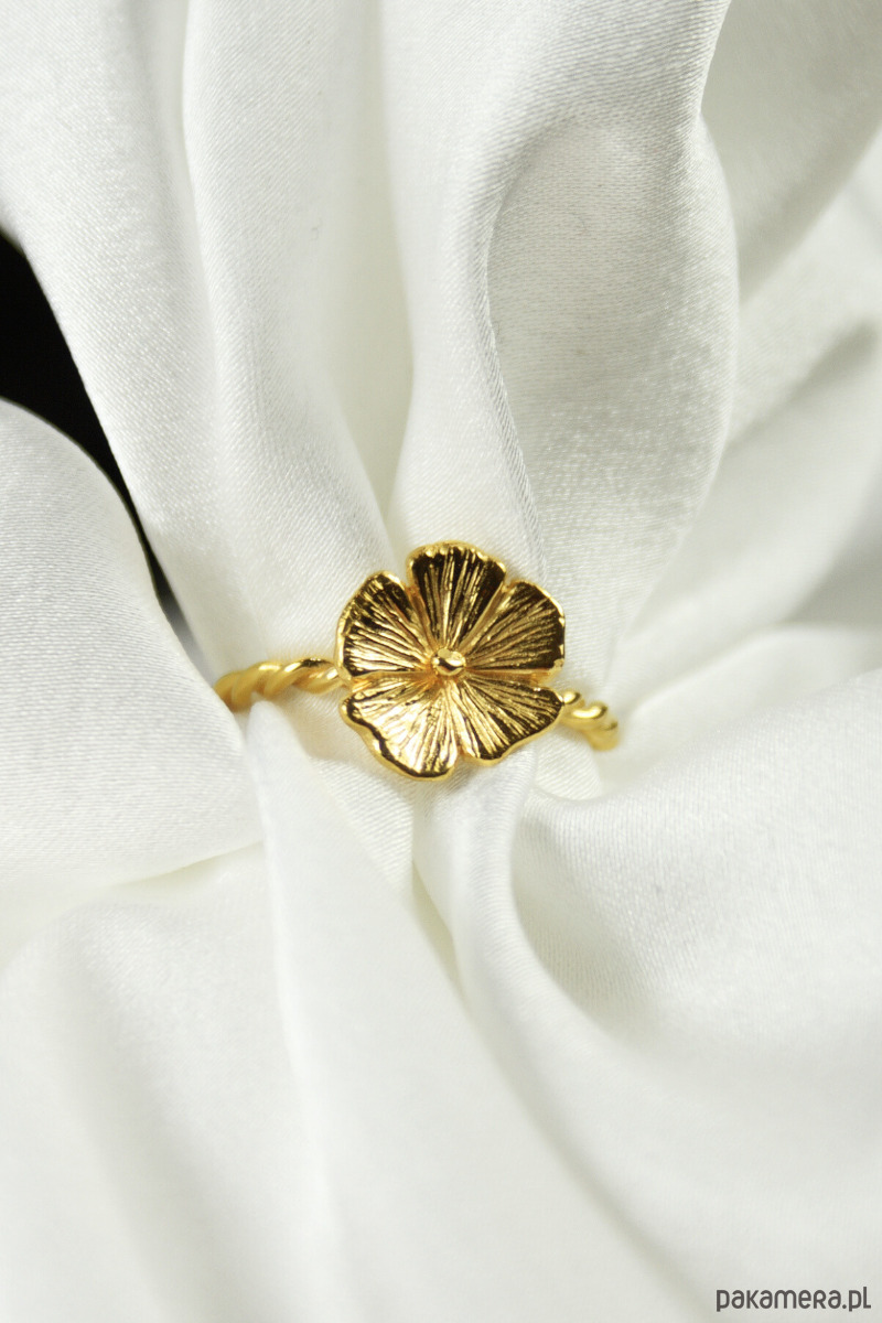 Srebrny pozłacany pierścionek Cosmos, z kwiatem, polny kwiat, HerRing