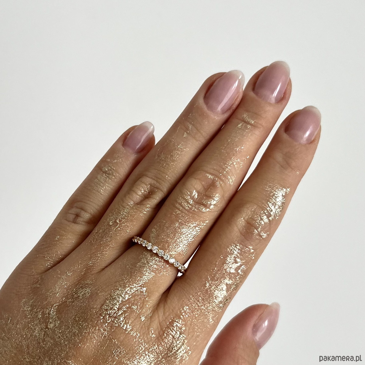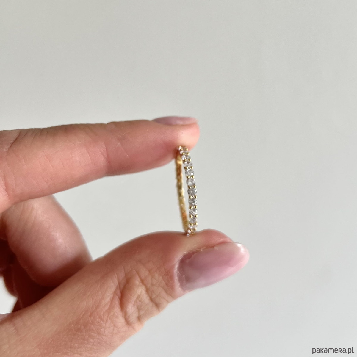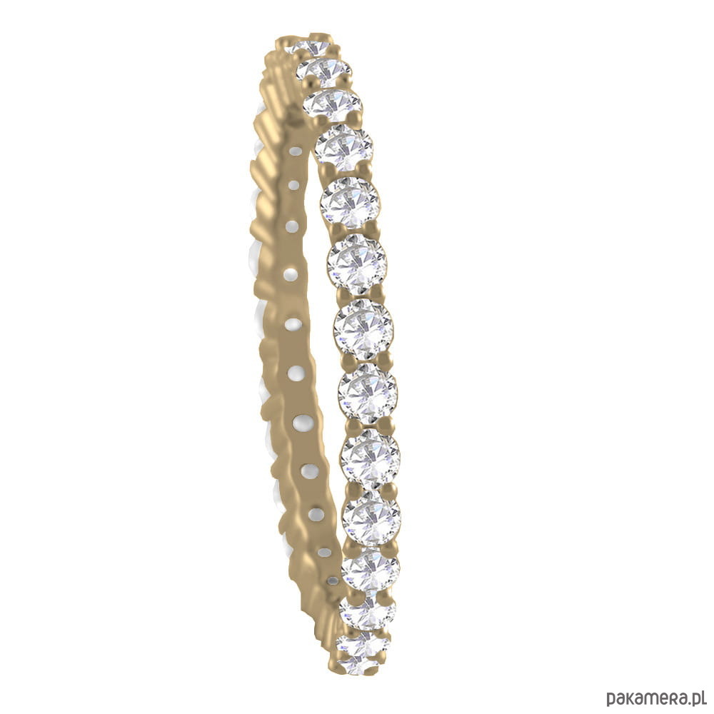 Srebrny pozłacany pierścionek obrączka z cyrkoniami wykonany w całości ze srebrna