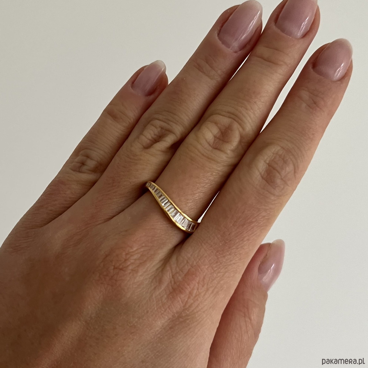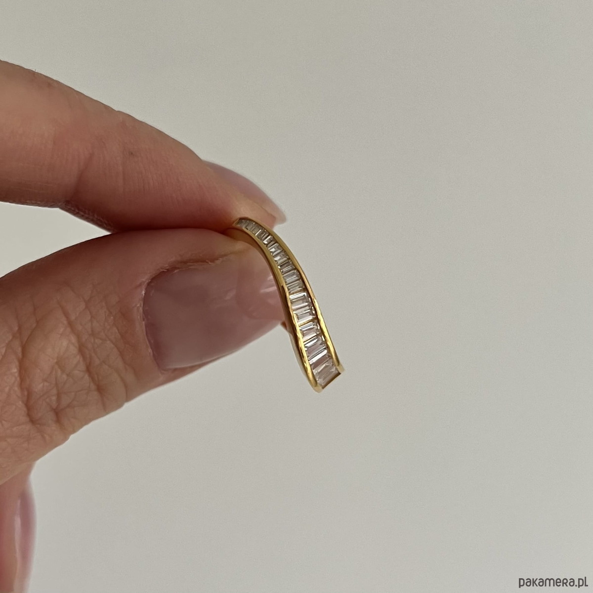 Srebrny pozłacany pierścionek z cyrkoniami wykonany w całości ze srebrna