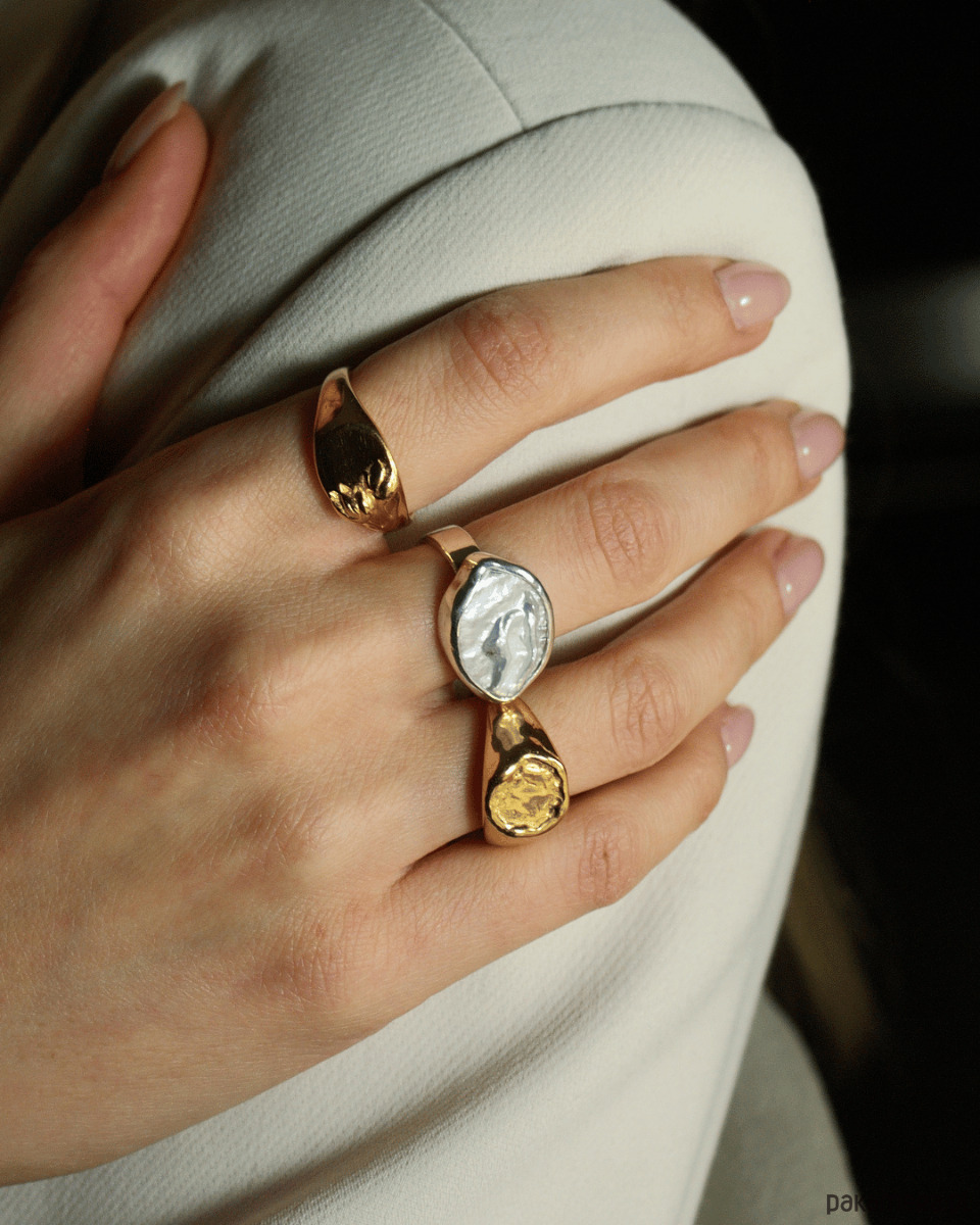 Sygnet Aqua to wyjątkowy symbol siły i płynności natury. Zaprojektowałam go dla osób, które cenią autentyczne rzemiosło i surowe, organiczne formy. Model ten idealnie łączy wyrazistą strukturę z subtelną elegancją, dzięki czemu staje się nie tylko biżuterią, ale Twoim osobistym talizmanem.