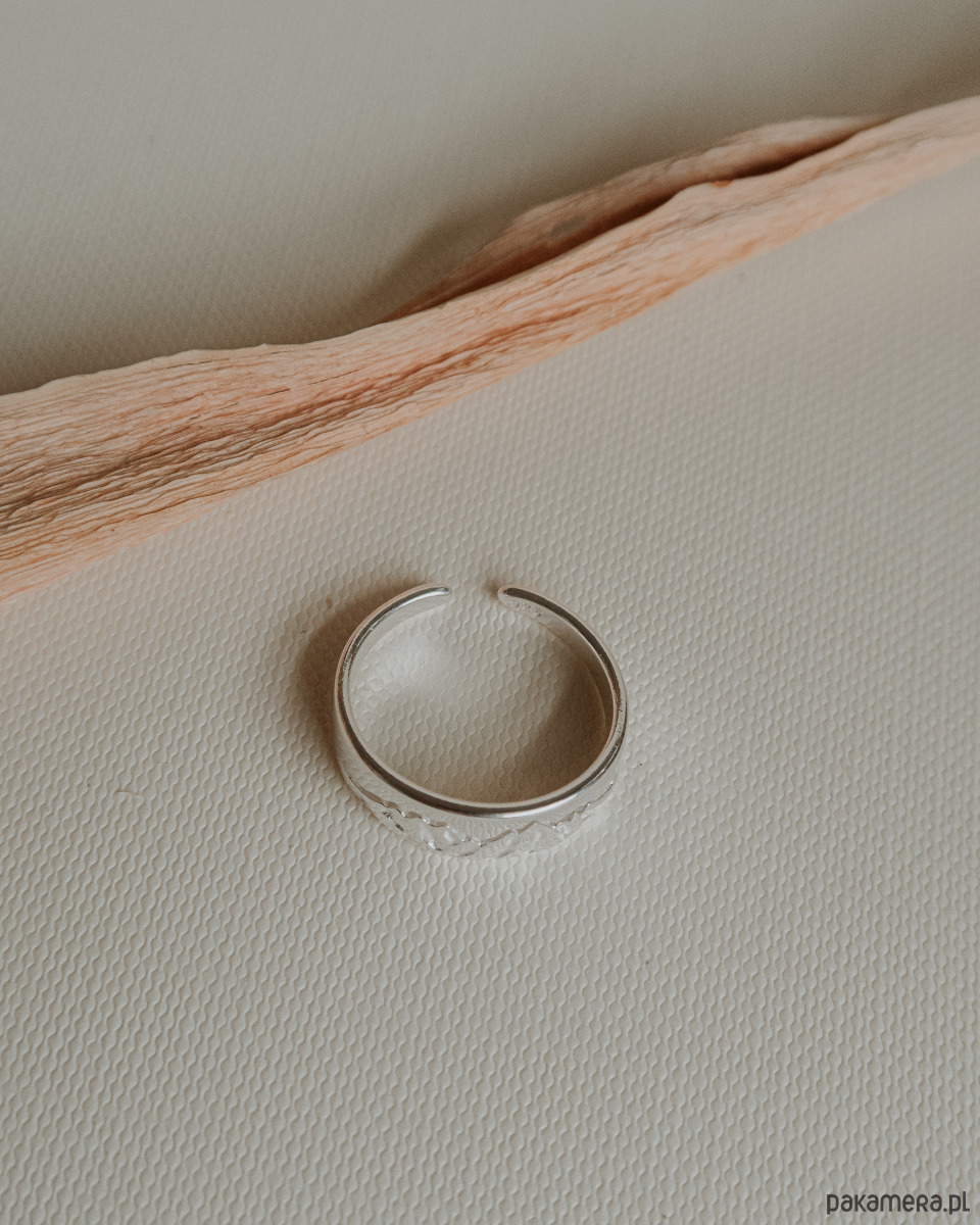 Srebrny, regulowany pierścionek Góry