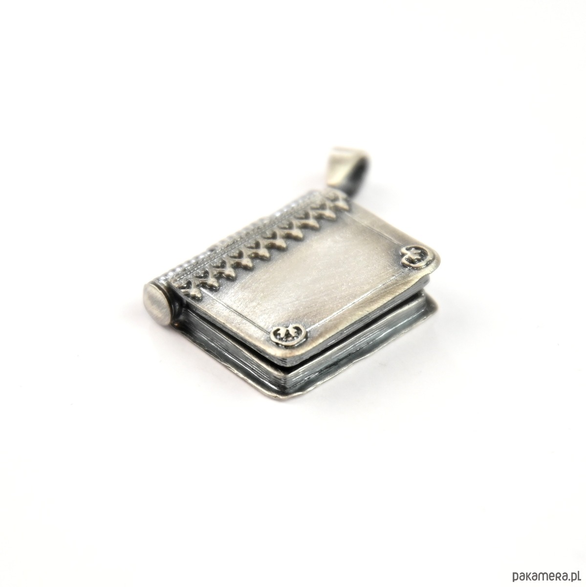 Wśród srebrnych skarbów ukrywa się maleńka księga, która czeka, by zapisać Twoją własną tajemnicę. Ten subtelny sekretnik, wykonany ze srebra próby 925 i wykończony grafitową oksydą, przypomina zagadkowy tomik wyjęty z zaczarowanej biblioteki. Jego stronice są zamknięte, a jednak kryją miejsce na wspomnienie, które chcesz nosić najbliżej serca.