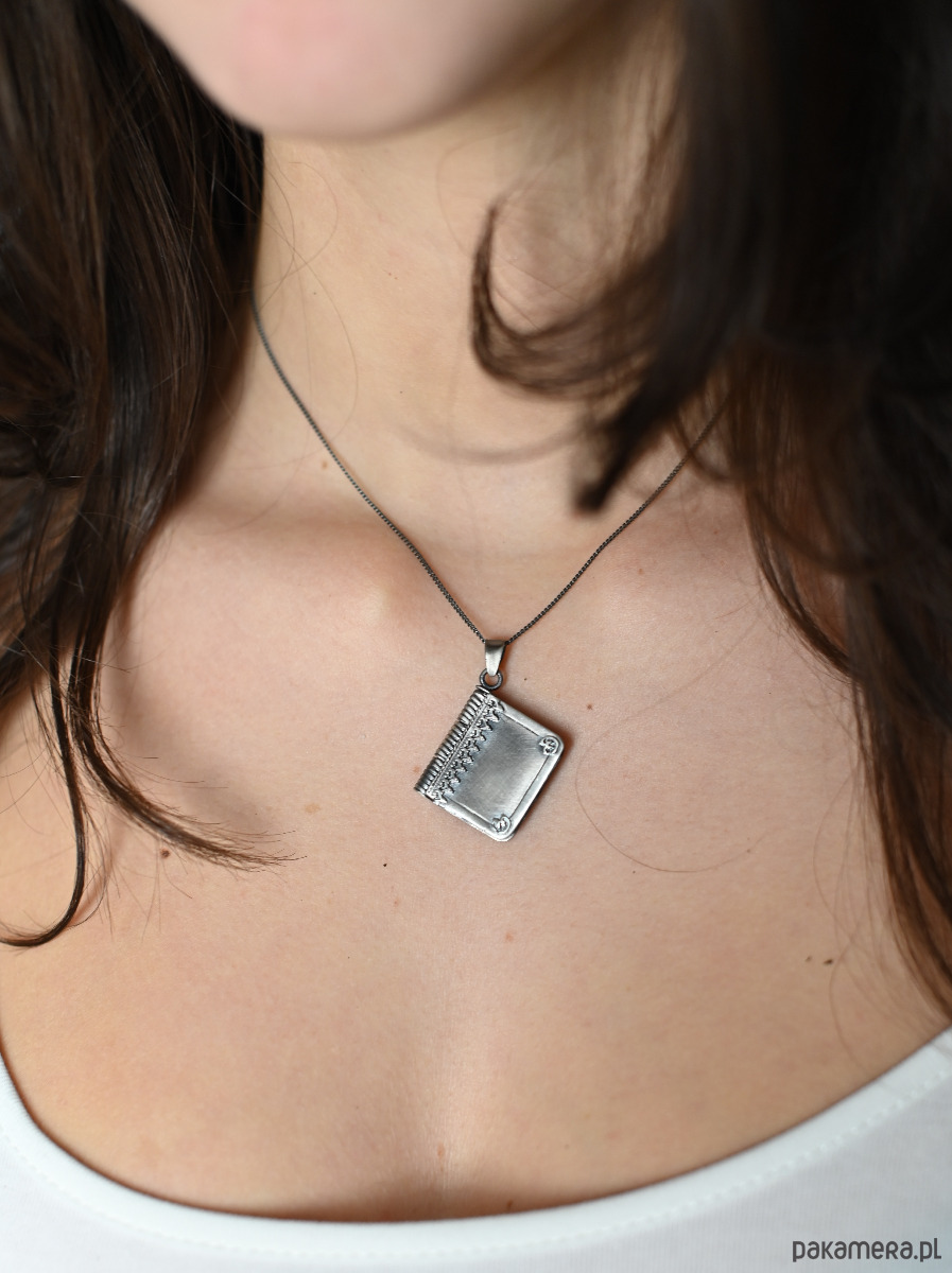 Wyjątkowy wisiorek, który łączy w sobie elegancję i nutę tajemnicy. Ten srebrny sekretnik w formie miniaturowej książki pozwala zamknąć w sobie mały sekret, zdjęcie lub talizman, noszony blisko serca. To idealna ozdoba dla osób ceniących biżuterię symboliczną i pełną znaczeń.