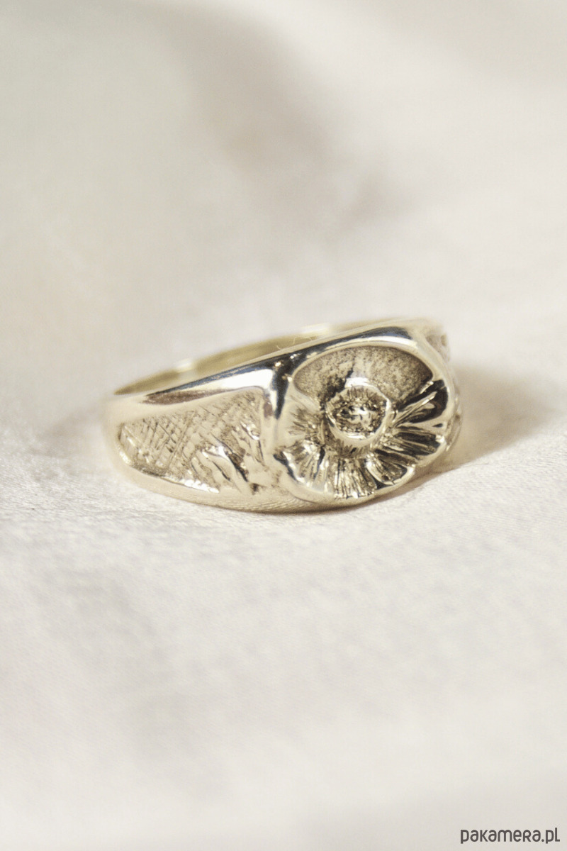 Sygnet Peony – Srebrna Piwonia (Rękodzieło)