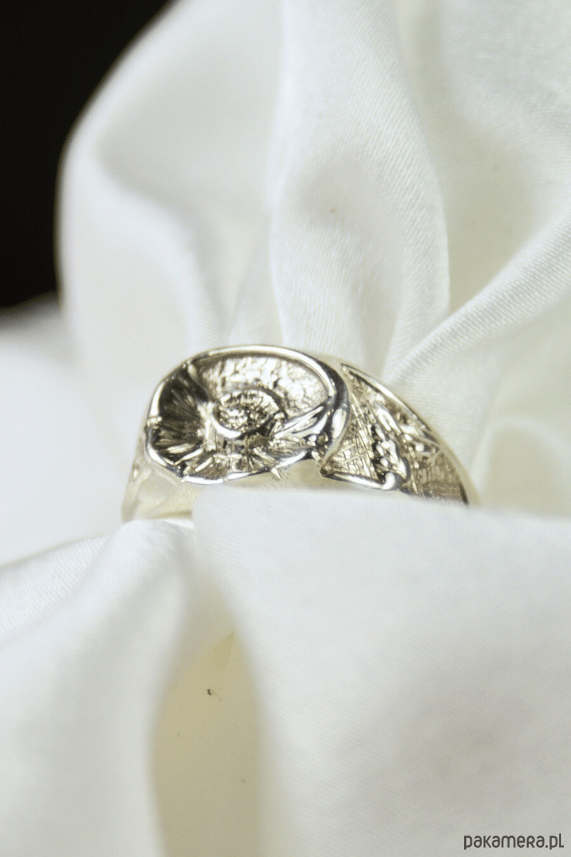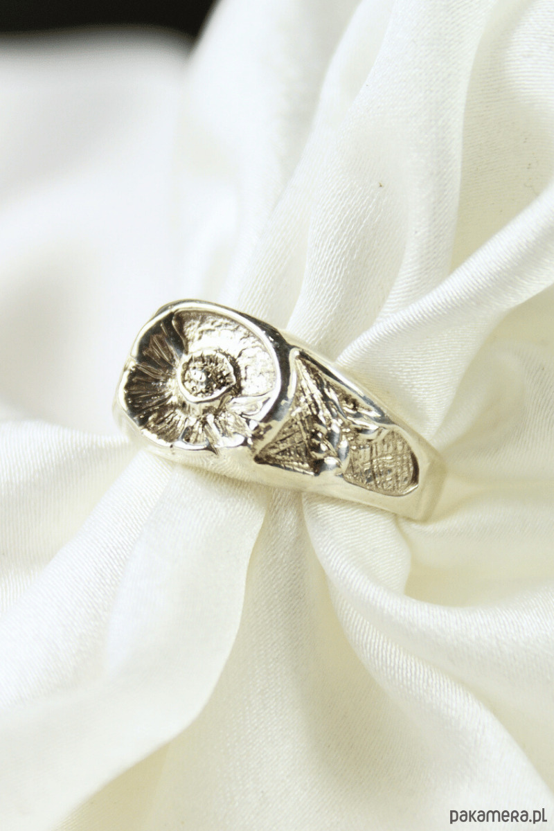 Sygnet Peony – Srebrna Piwonia (Rękodzieło)