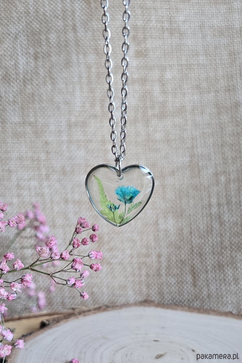 Oferuję Państwu unikalną biżuterię. Zawieszka jest wykonana z suszonych kwiatów i żywicy epoksydowej. Biżuteria jest wspaniałym i oryginalnym prezentem na lata.