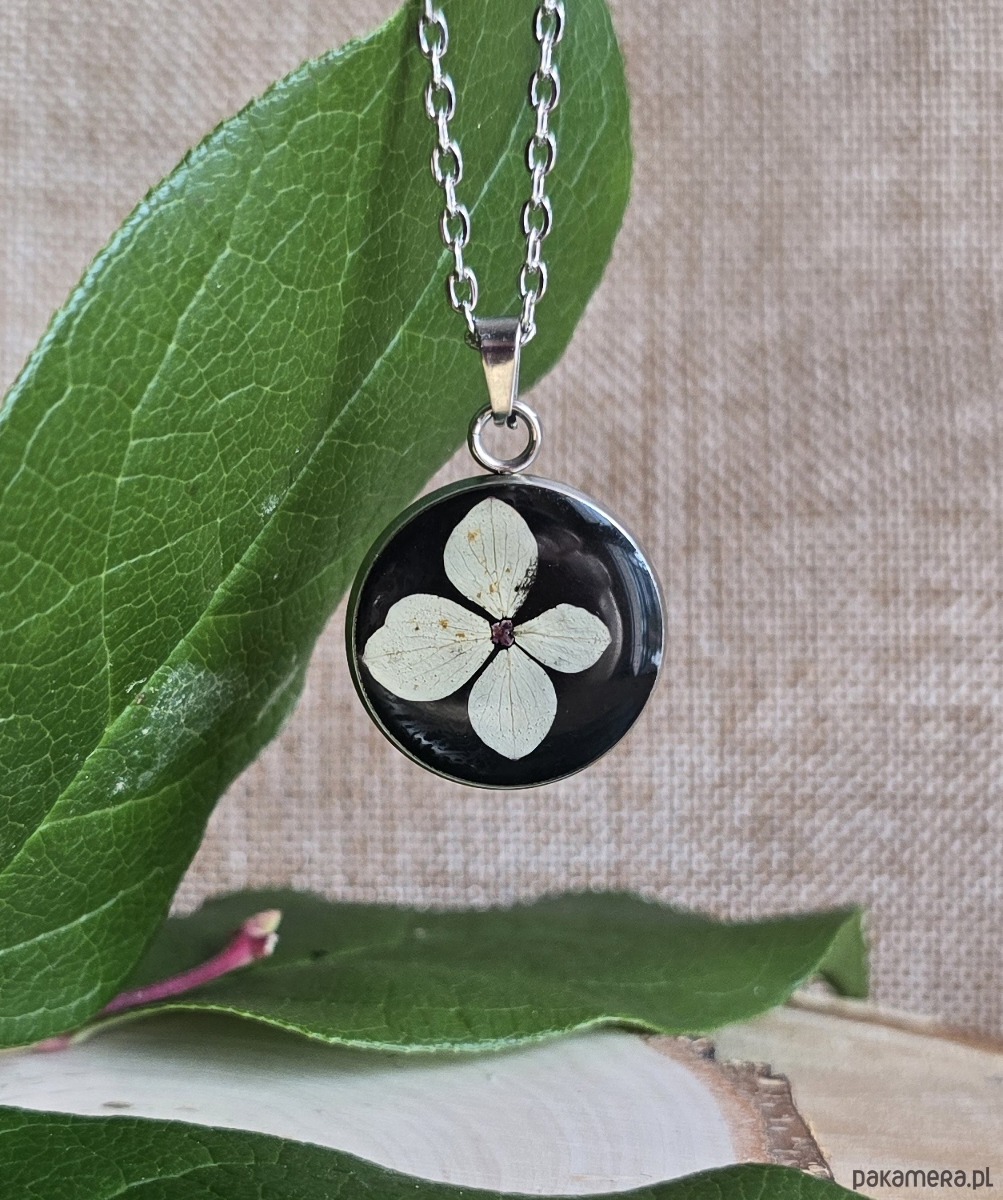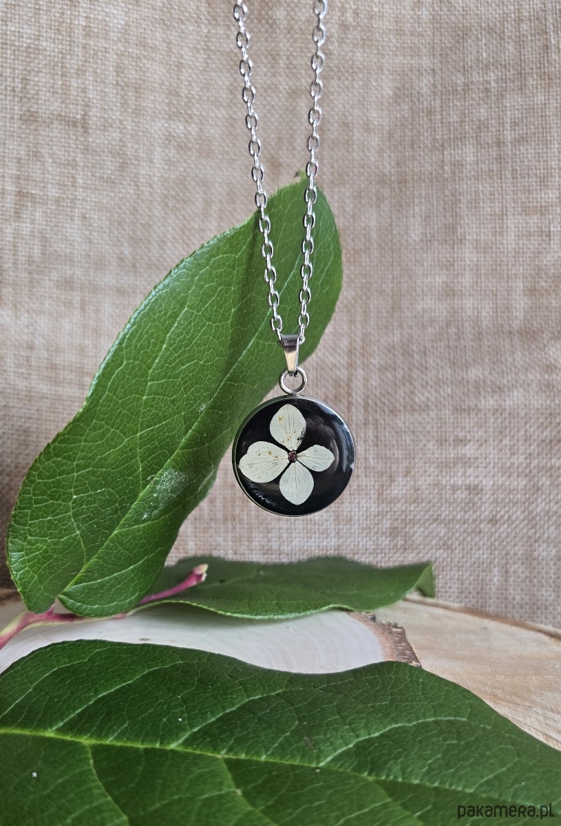 Oferuję Państwu unikalną biżuterię. Zawieszka jest wykonana z suszonych kwiatów i żywicy epoksydowej. Biżuteria jest wspaniałym i oryginalnym prezentem na lata.