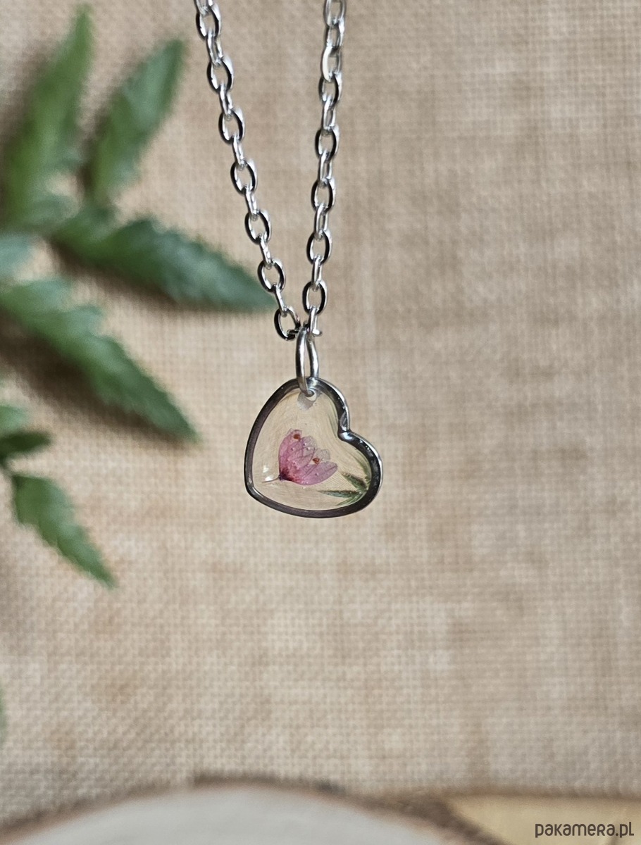 Oferuję Państwu unikalną biżuterię. Zawieszka jest wykonana z suszonych kwiatów i żywicy epoksydowej. Biżuteria jest wspaniałym i oryginalnym prezentem na lata.