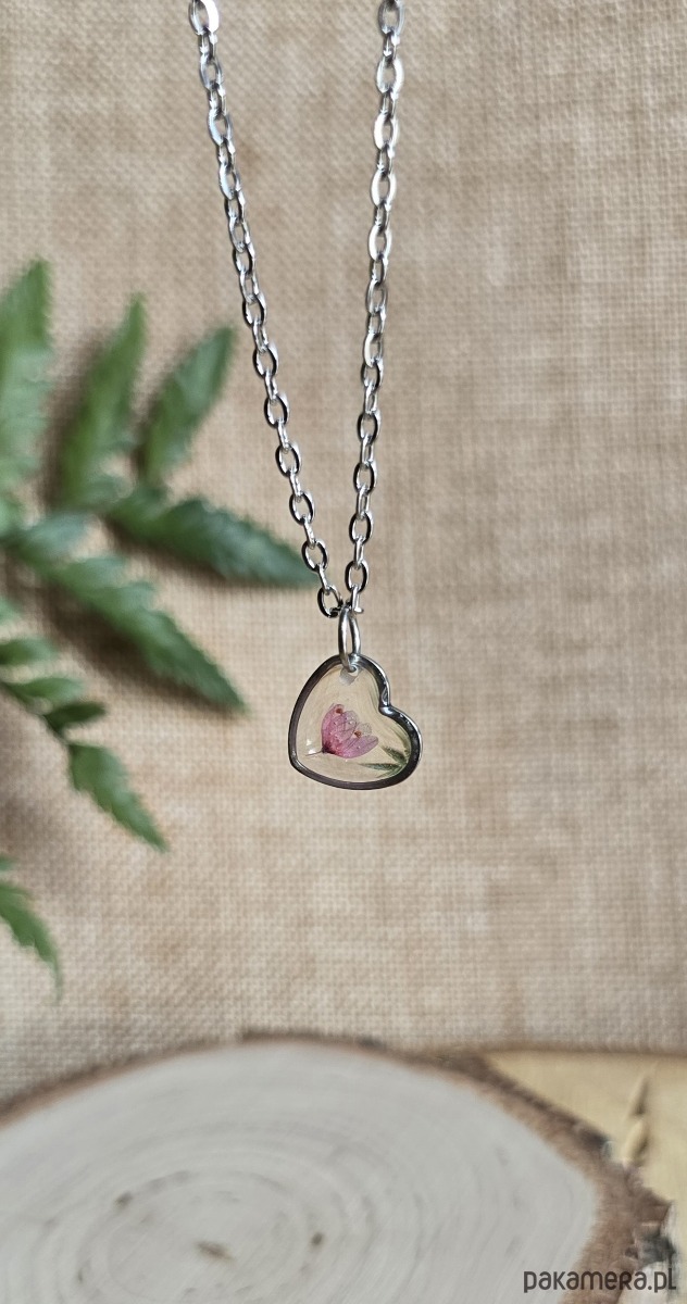Srebrny wisiorek prawdziwe kwiaty różowe serce